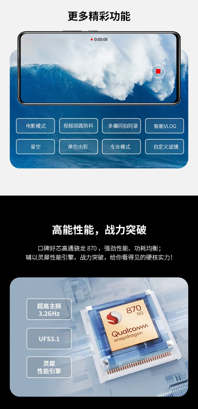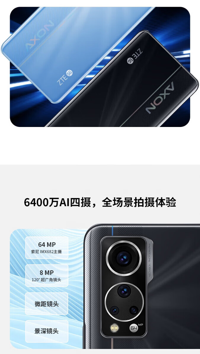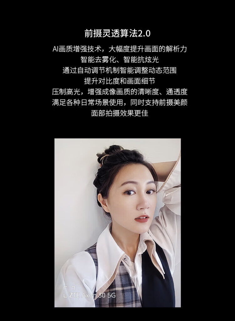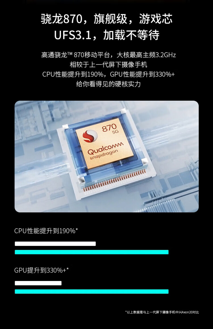 中兴天机Axon 30 A2322 骁龙870第二代屏下摄像5G手机 中兴A31pro曜石黑(展99送充电器) 8GB+128GB