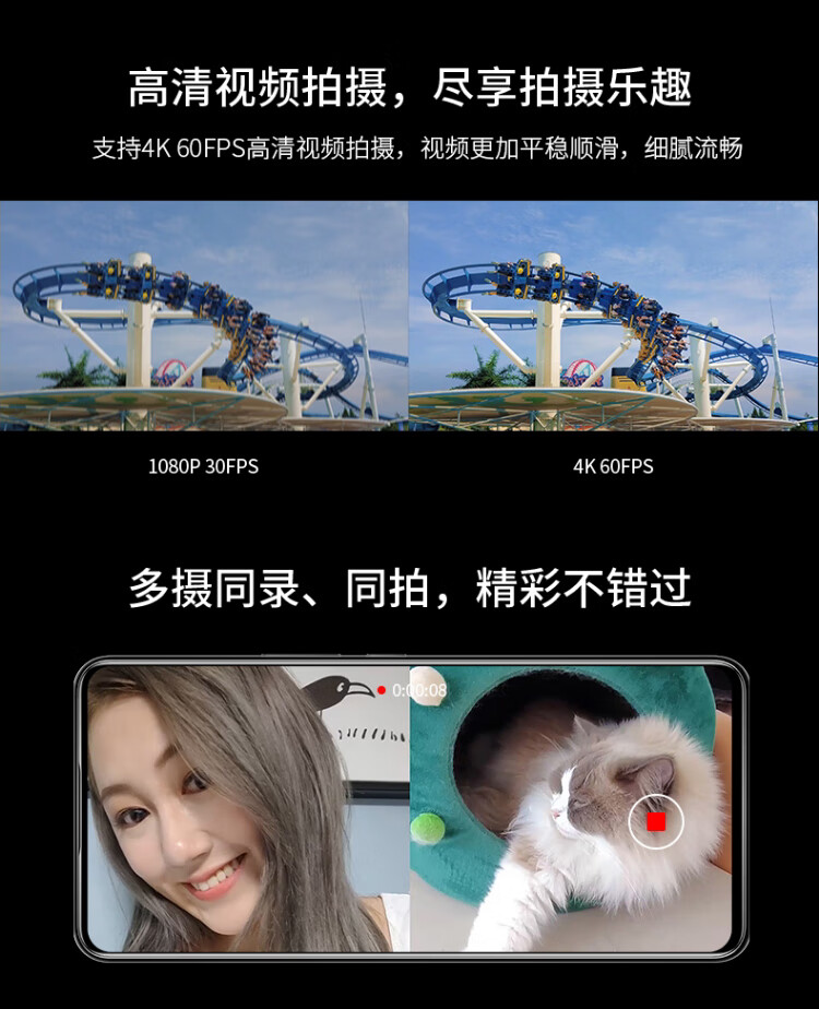 华为(HUAWEI)智选 Hi畅享60S 5G通智能大内存学生新款二原装便宜双卡 60S黑色 耀夜黑+快充 8GB+256GB