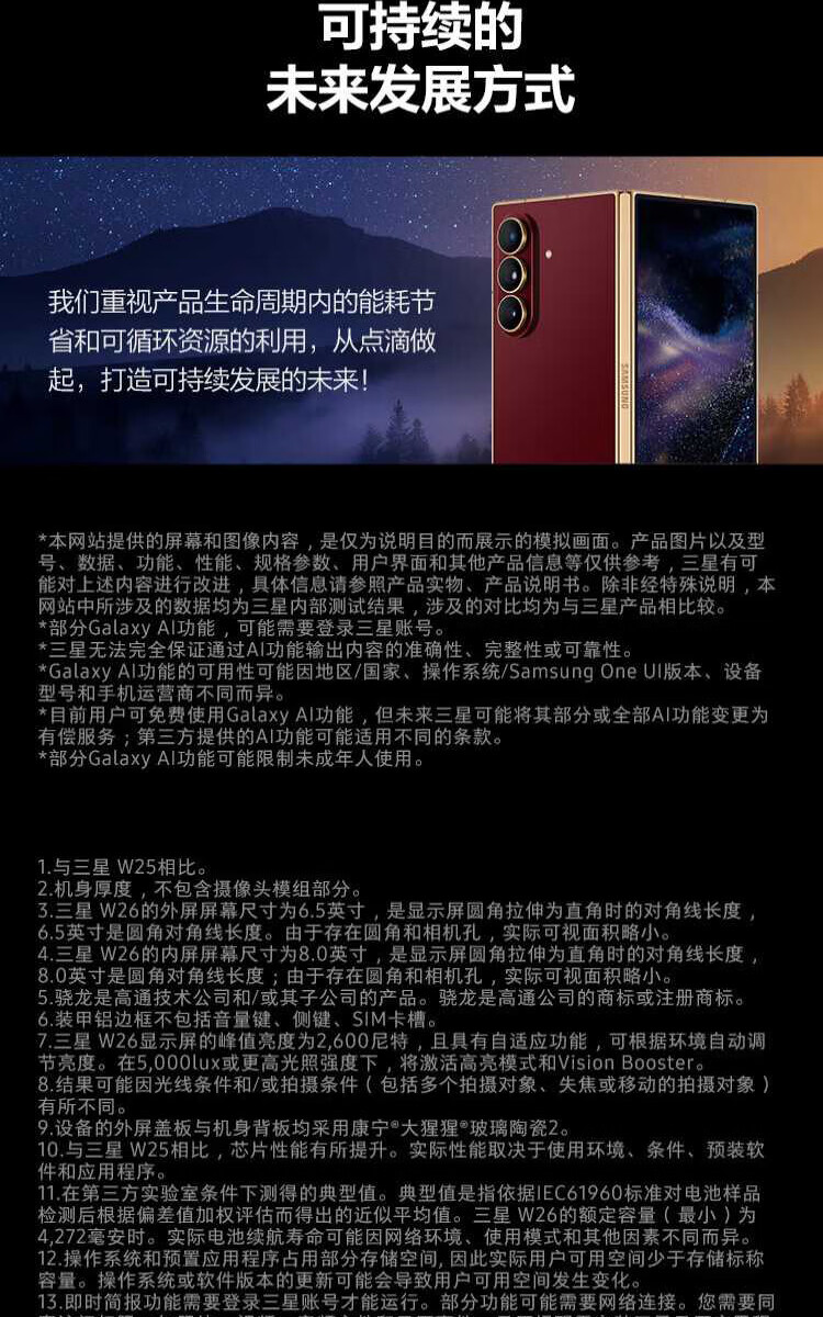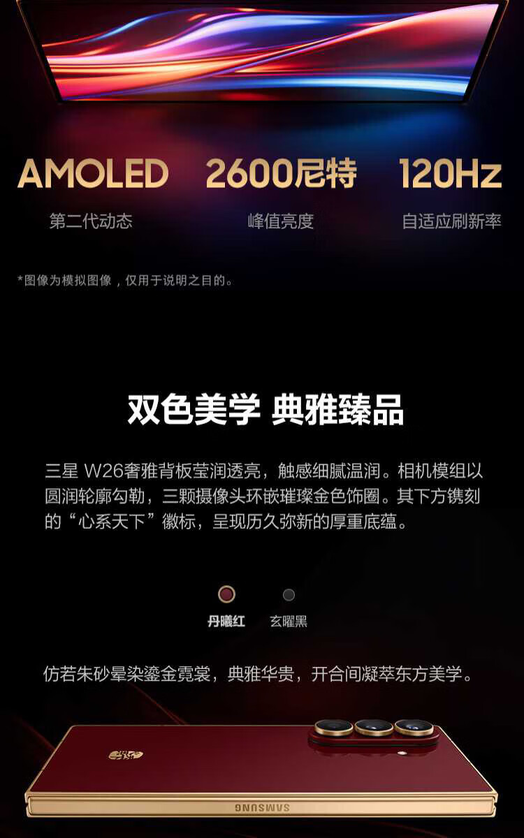 三星(SAMSUNG)心系天下W26 新品旗舰折叠屏5G手机【北京支持同城闪送】全新正品未拆封未激活 2025年新机上市 丹曦红 16GB+1TB 6期免息