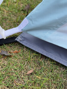 很不错的地垫,有单独的收纳袋,四周还带着卡子,我是零动防雨版的帐篷,直接卡帐篷四个角的卡扣里就行,真心方便