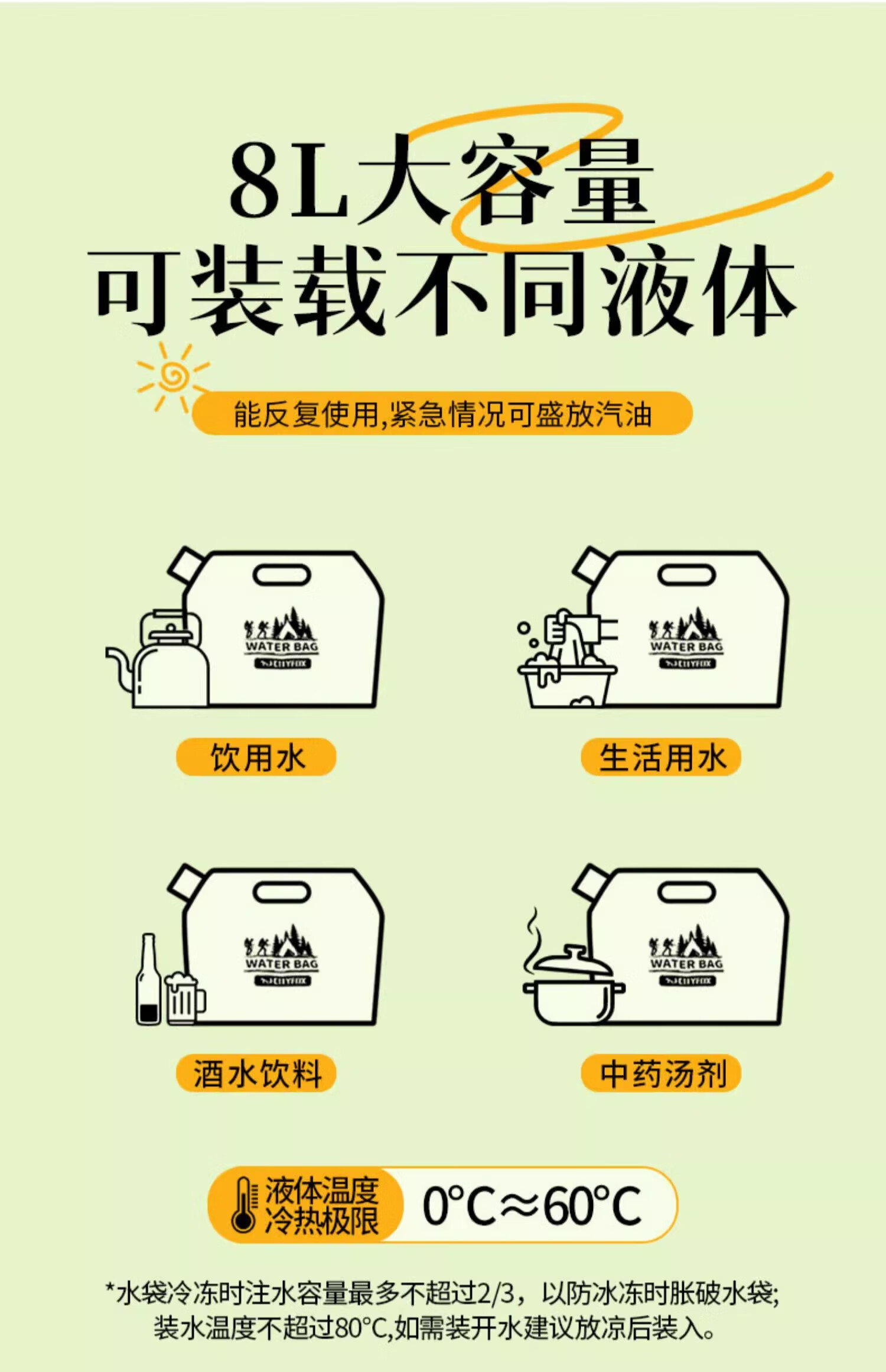 水袋易于携带且耐用,户外用水方便,手提设计不勒,价格实惠,户外必备品,推荐