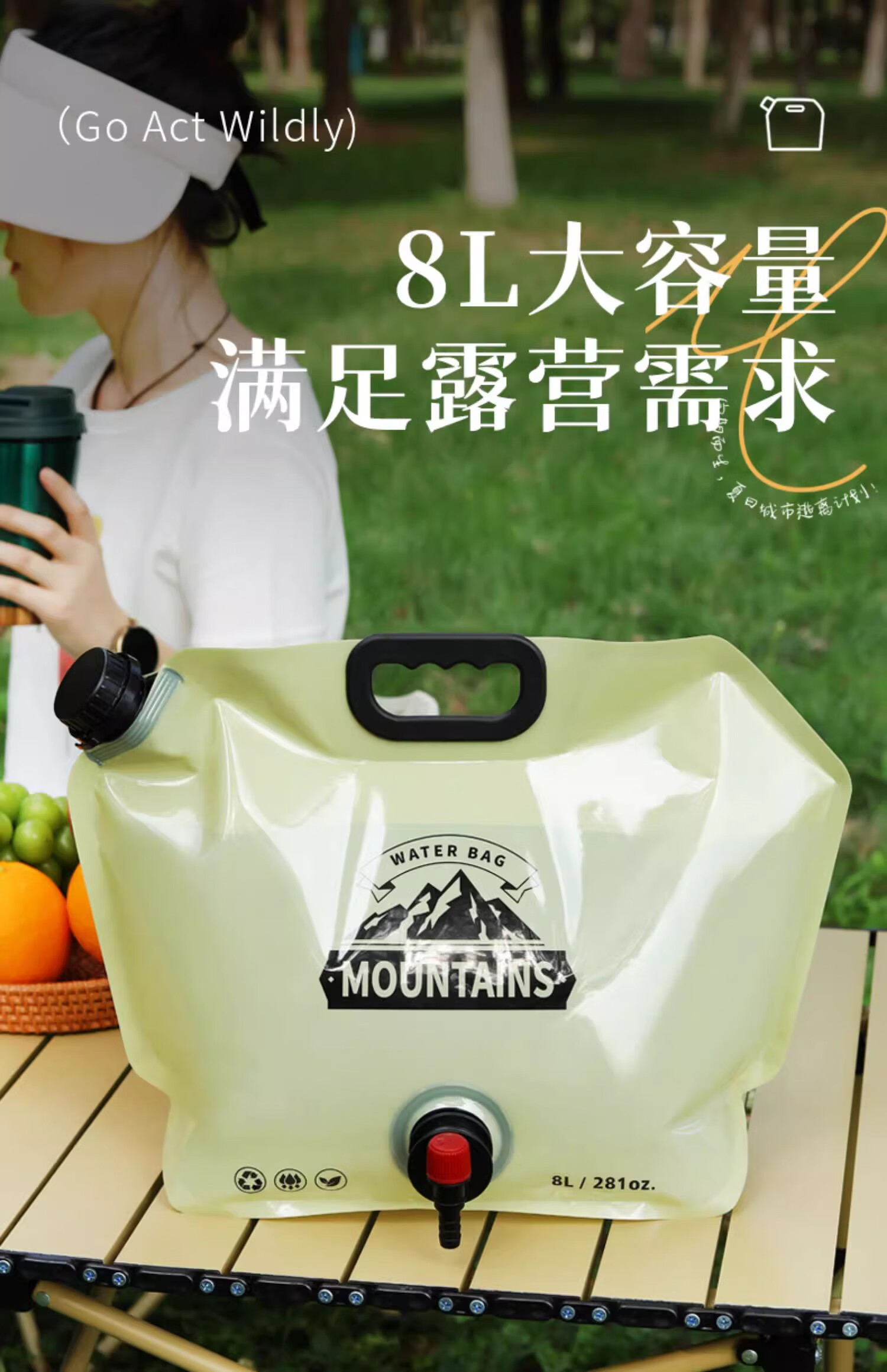 初构想水袋户外便携演唱会软水袋音乐节折叠露营中药水袋便携果汁饮料 8L大容量水龙头款