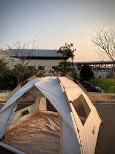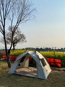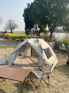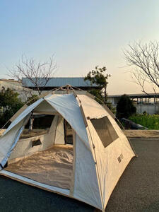 周末趁着好天气出来露营。速开的帐篷搭建起来很快。空间挺大的比想象要大。支架材质好结实不容易弯。窗户的门帘能收卷起来 😝网纱设计到位 虫子不会跑进来。还购买了桌椅 搭配起来完整美观,收纳也是超方便的。
