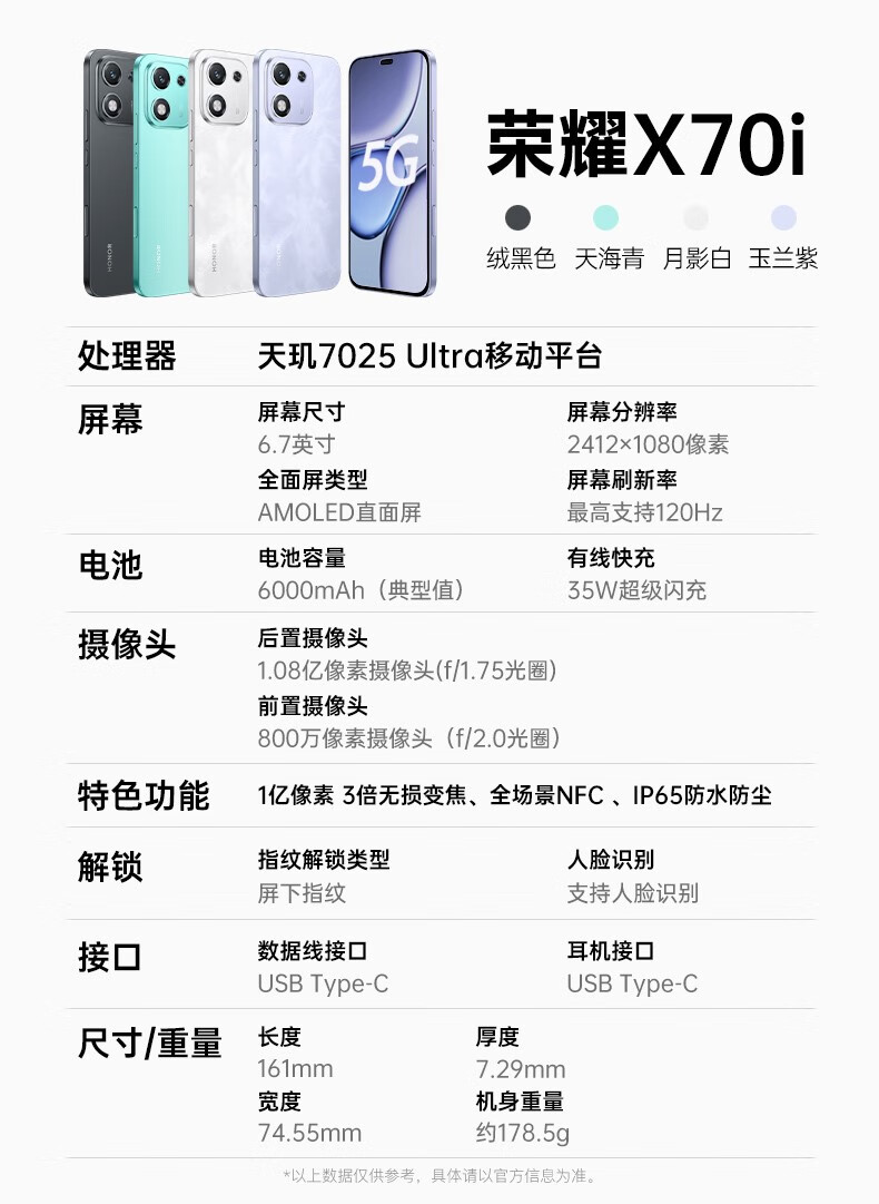 荣耀X70i 12+512G大内存直屏抗摔防水高品质OLED护眼大屏学生老人机手机X70Pro 绒黑色 8GB+256GB
