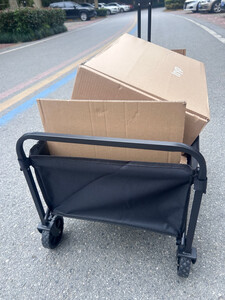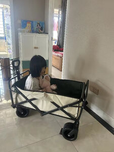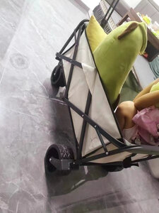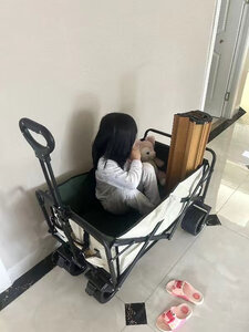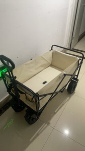 推车满大的,够装,平时快递和小朋友坐在上面都没问题,拉起来蛮顺滑的,轮子不是很大的,还没到很远的地方使用,目前就去拿快递的距离来说是ok的,就是手拉那里的长度感觉厂家还可以设计长一点,使用起来感觉差那么一点没法直接站直,需要稍微往后靠一些,大高个的话可能更明显
