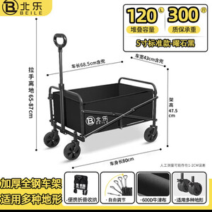 北乐露营推车户外折叠手推车营地车摆摊推车野餐推车小拉车聚拢型推车 【5寸标准款】曜石黑100L