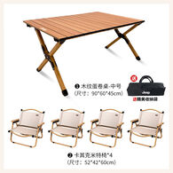 JEEP吉普户外折叠桌椅露营便携式野餐桌子野营茶桌全套装备蛋卷桌庭院 胡桃色中号+椅子4张