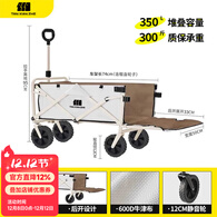 Aoran 露营推车可折叠户外手推野餐车营地拖车拉杆小拉车桌板野营车 咖色【露营套餐】配置如图