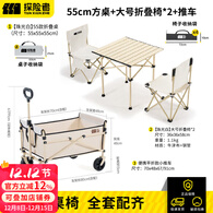 探险者露营桌户外桌椅套装折叠桌便携野餐桌蛋卷桌一桌四椅野营装备全套 55cm方桌+大号折叠椅*2+推车