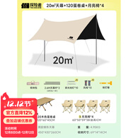 探险者(TAN XIAN ZHE)天幕帐篷户外露营黑胶天幕防晒遮阳棚便携野餐桌椅套装八角蝶形 20㎡天幕+120蛋卷桌+月亮椅*4