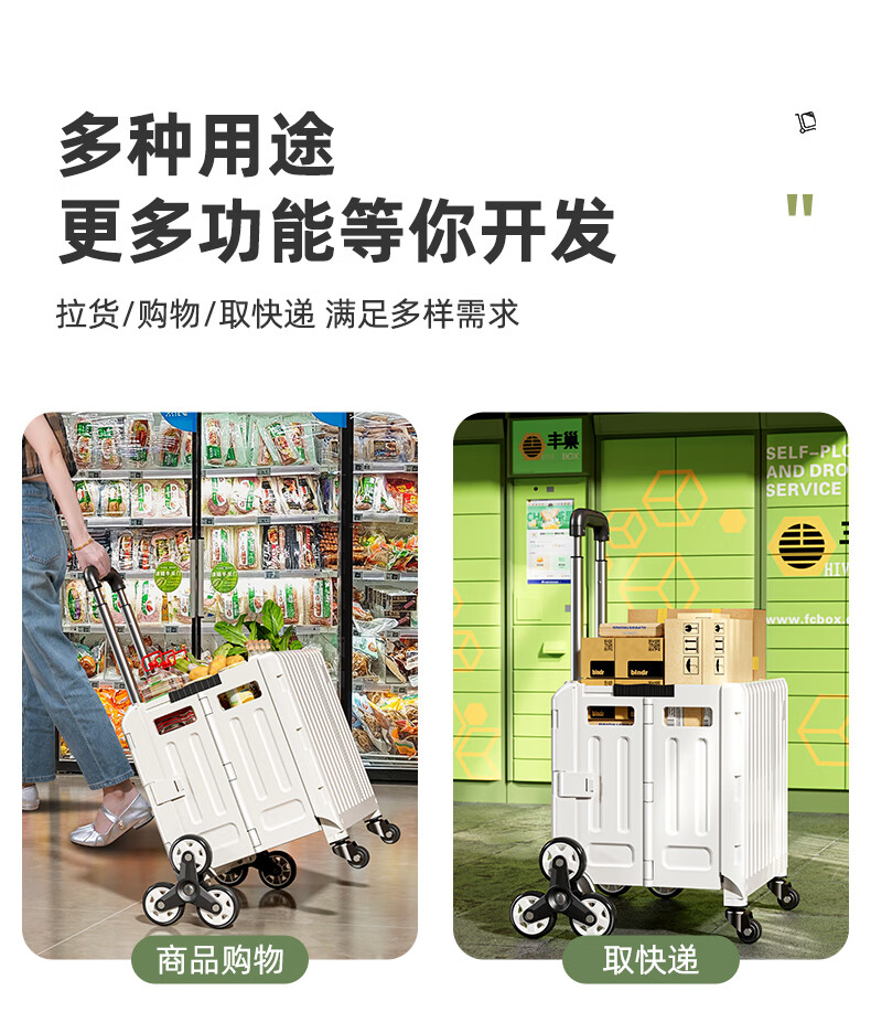 出门拿快递买菜逛超市都很方便 解放双手了 拿东西就不费力了 质量很不错 容易折叠,很赞很喜欢