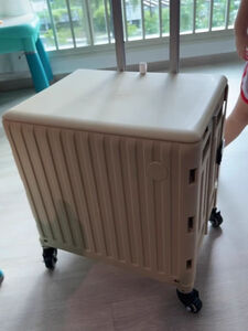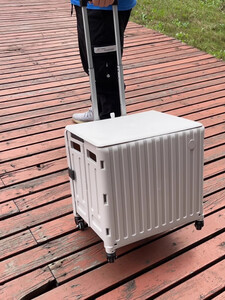 质量不错,收纳方便,非常棒的生活好帮手,拉着就走,盖上盖子就能充当椅子坐,超棒