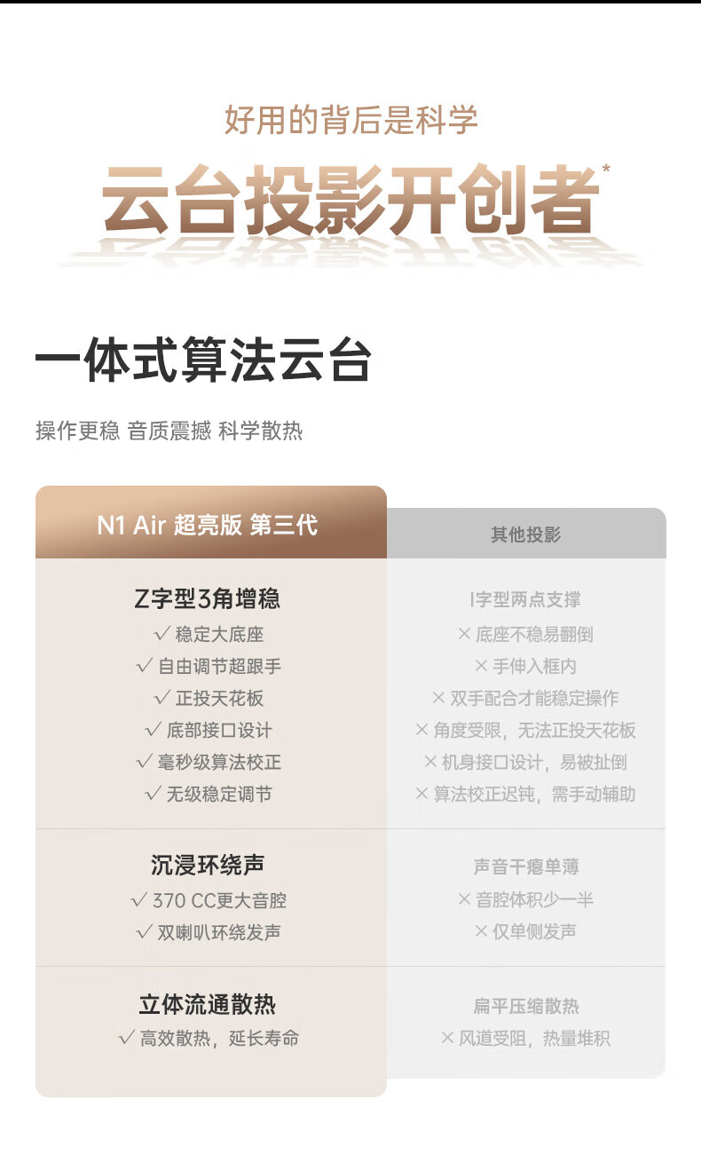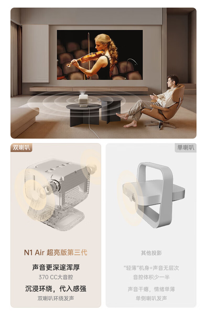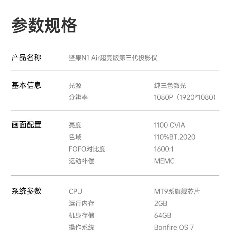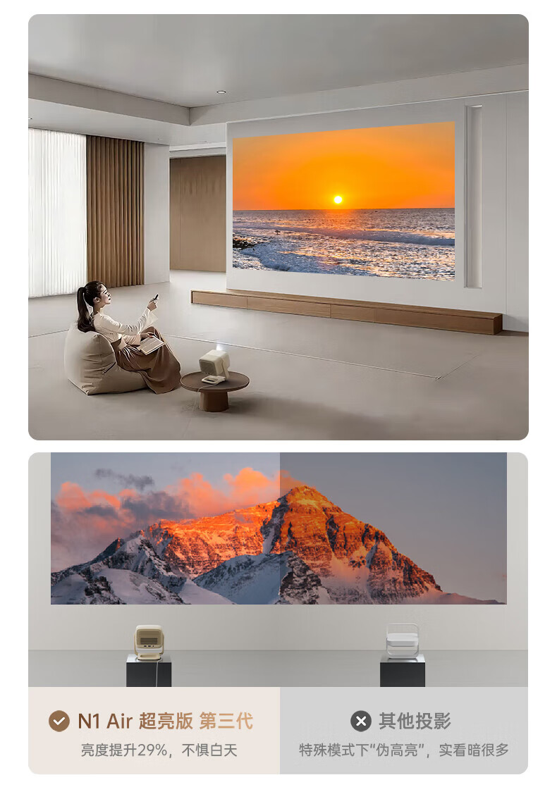 坚果投影N1 Air超亮版第三代 投影仪家用 纯三色激光高清家庭影院云台投影机(1100CVIA) N1 Air超亮版【升级第3代】【官方标配】