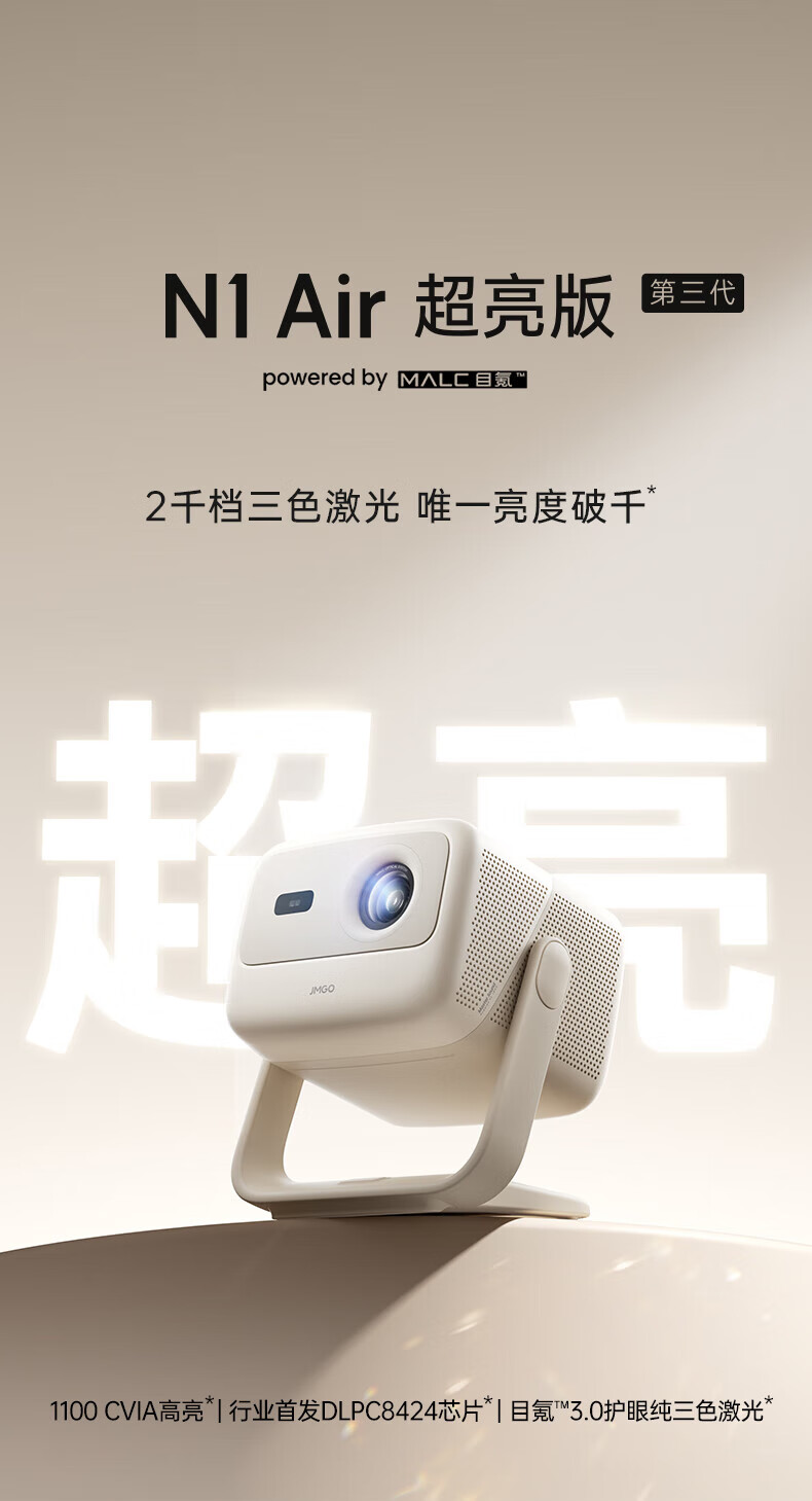 坚果投影N1 Air超亮版第三代 投影仪家用 纯三色激光高清家庭影院云台投影机 (1100CVIA) N1 Air超亮版【升级第3代】【标配】