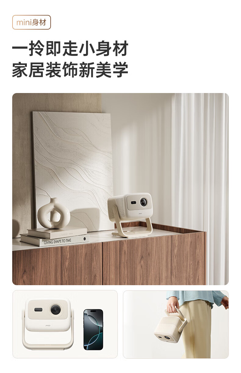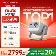 坚果投影(JMGO)【N1高亮版】纯三色激光云台投影仪家用超高清白天投墙卧室办公智能家庭影院 0.33”DMD|900lm N1 高亮版