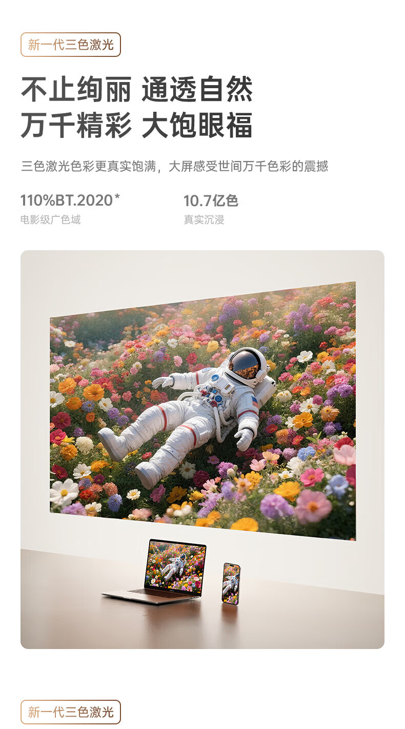 坚果(JMGO)N1 Air旗舰版 投影仪家用 纯三色激光高清云台投影机 智能家庭影院 一级能效(1200CVIA) 单机