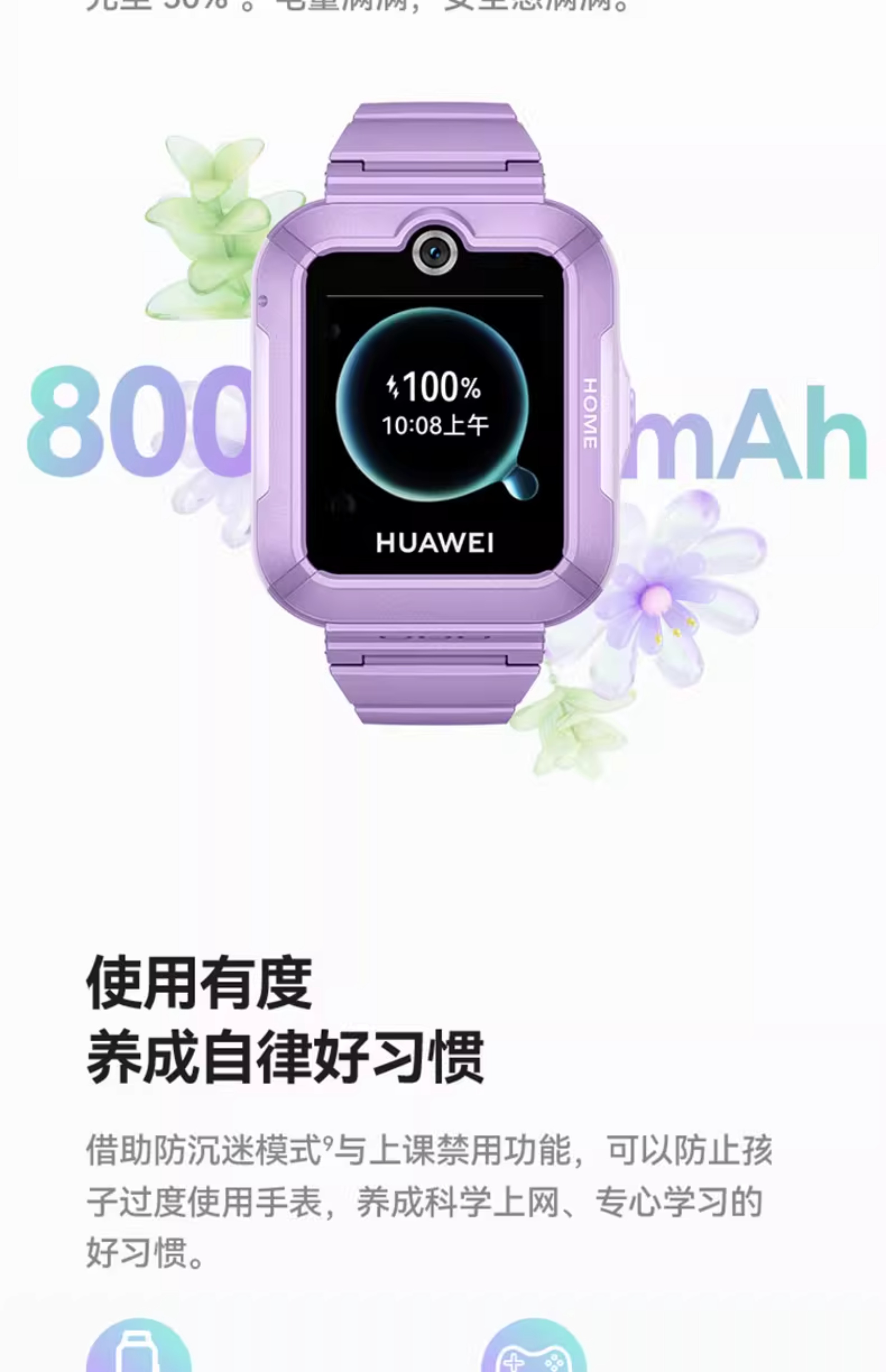 华为儿童手表 5 仲夏紫 智能手表 电话手表 离线定位 畅连通话 快充大电池 防沉迷设置 学习无打扰 华为儿童手表3Pro-星云粉