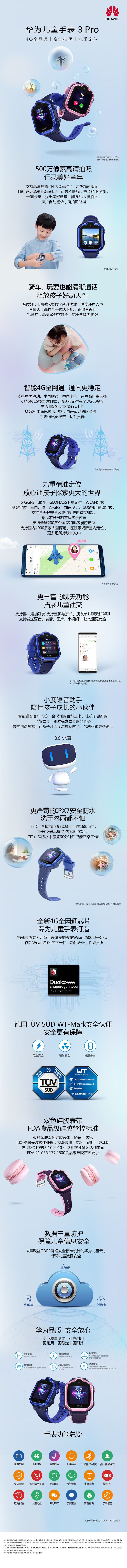 华为(HUAWEI)【补贴20】华为儿童手表3Pro超能版智能通中小学生电话手表 儿童手表3s 冰山蓝 官方标配