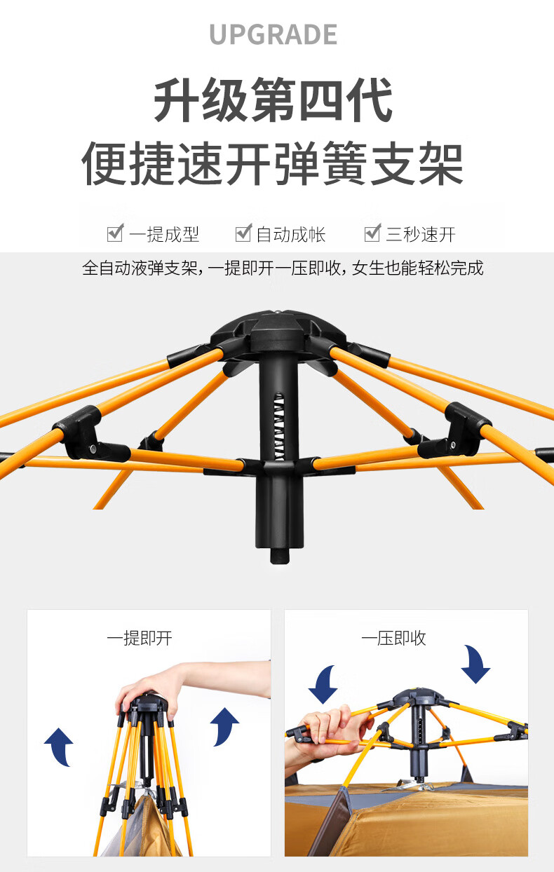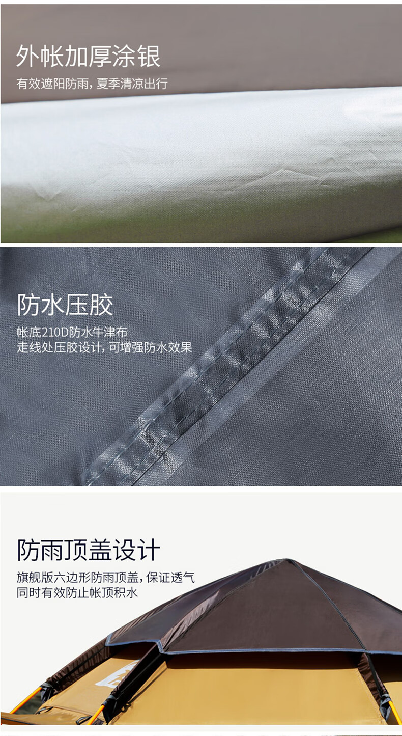 何佳功新燕尾天幕户外露营懒人免安装加厚黑胶防晒遮阳防雨速搭天幕 速搭型12㎡银胶天幕3.3*3.6米2-4人(1