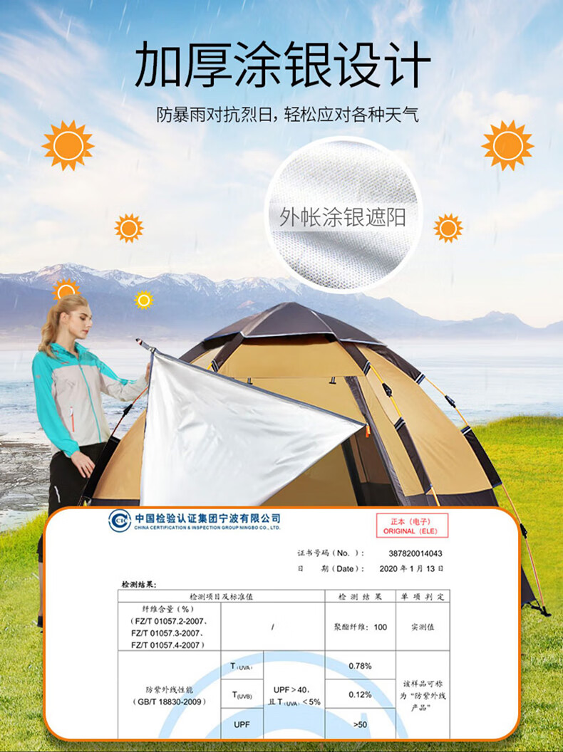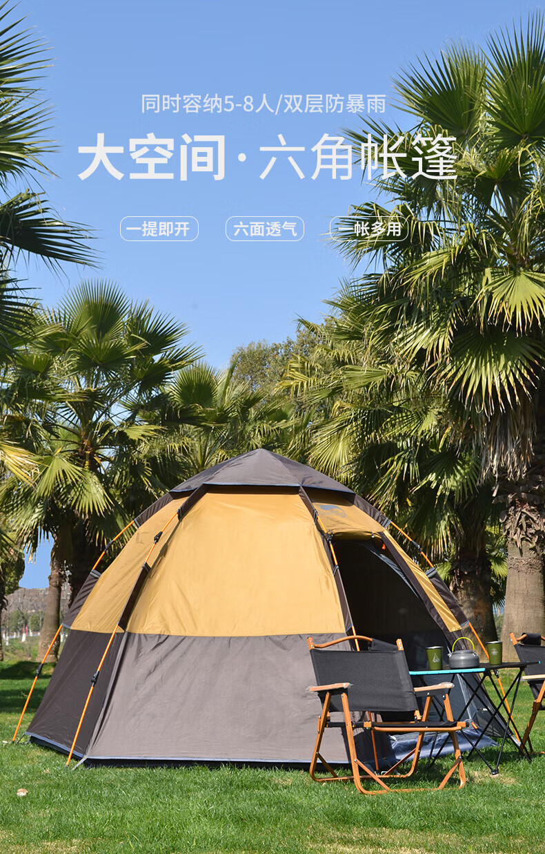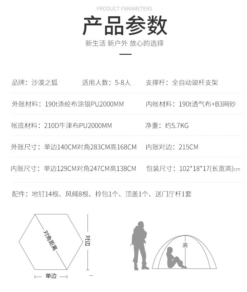 沙漠之狐(DESERT&FOX)帐篷户外3-4人全自动防暴雨加厚多人露营野外野营双层速开账蓬 旗舰款 5-8人咖啡色