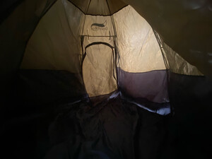我们是一家五口三个小孩,所以够睡,而且还剩两个位置可以睡。 可能是天气冷起雾了,帐篷里还是有点潮湿的,但是铺上防潮垫的话就不会,帐篷里还是不冷的。
