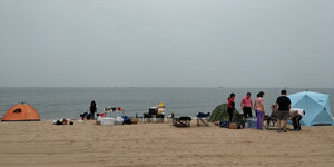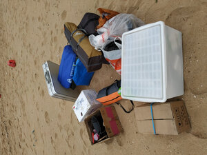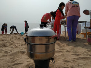 沙滩烧烤必备,这次出行的重头戏,顶着九级大风丝毫不乱,垫子因为有个小口,老板又重新发了一个,赞赞赞!