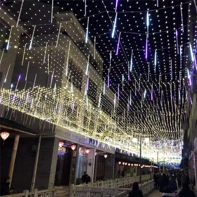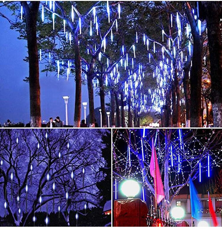 爱维逸LED流星雨彩灯串新年元宵节装饰挂树户外防水闪灯满天星庭院氛围 蓝色 【插电款】30CM(8支套装)