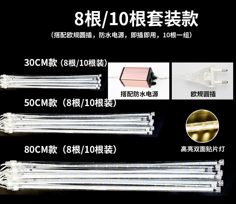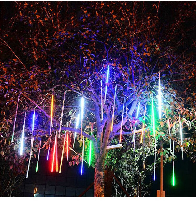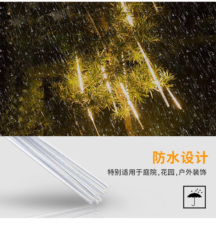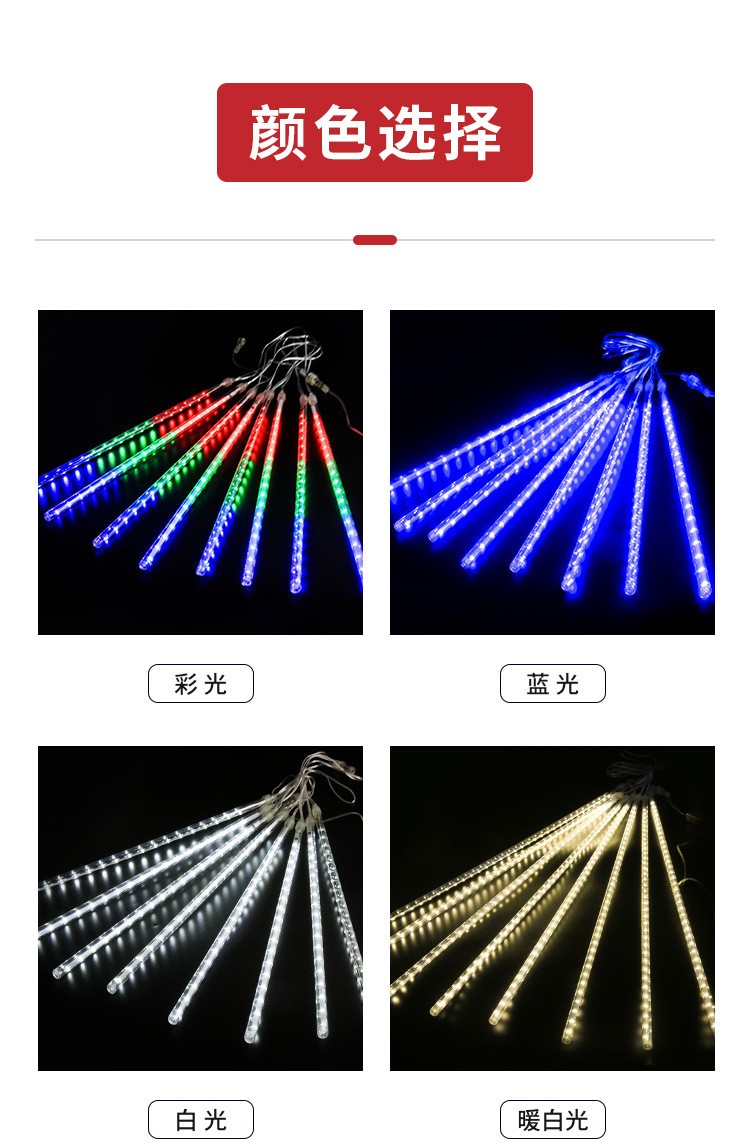 品志尚led流星雨灯新年装饰太阳能彩灯串春节氛围亮化装饰户外树灯挂灯 彩色长度50cm【插电可串联】 8支装