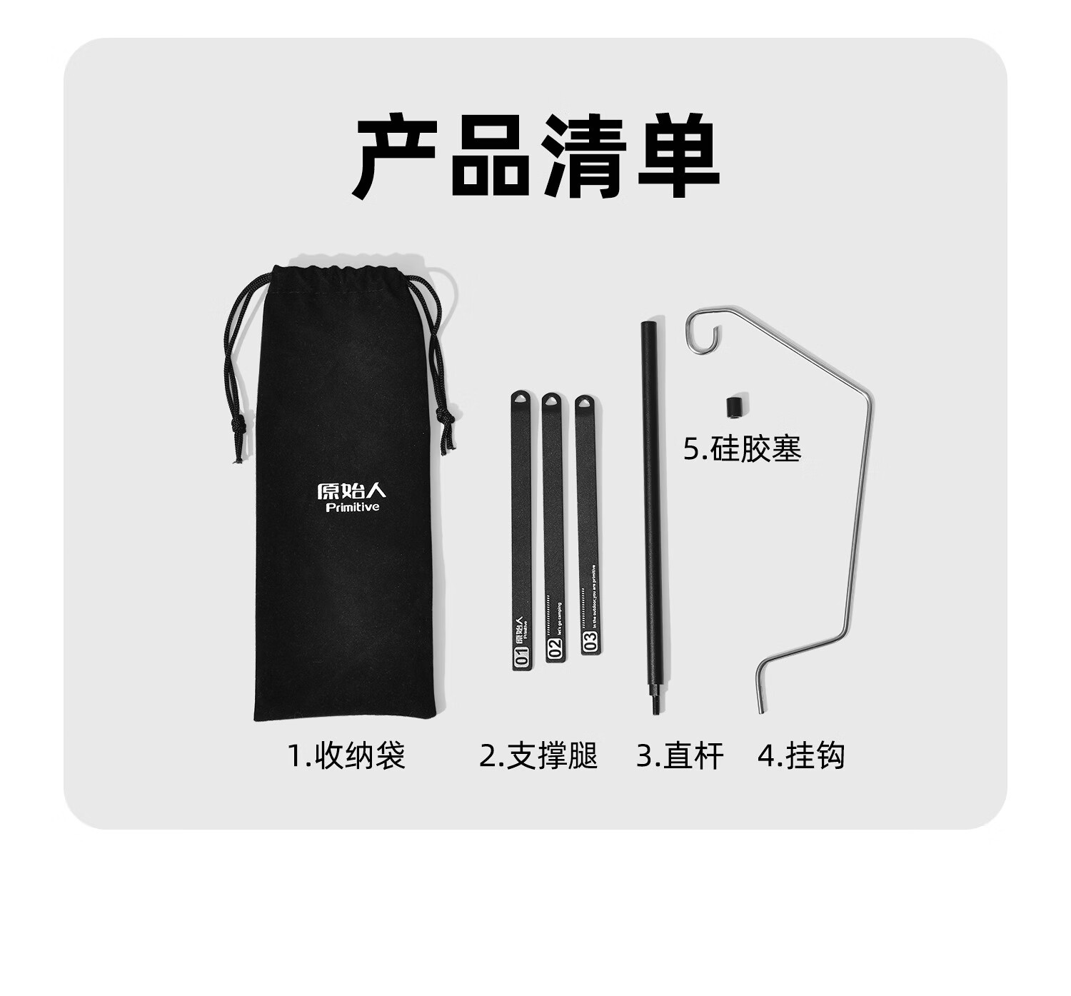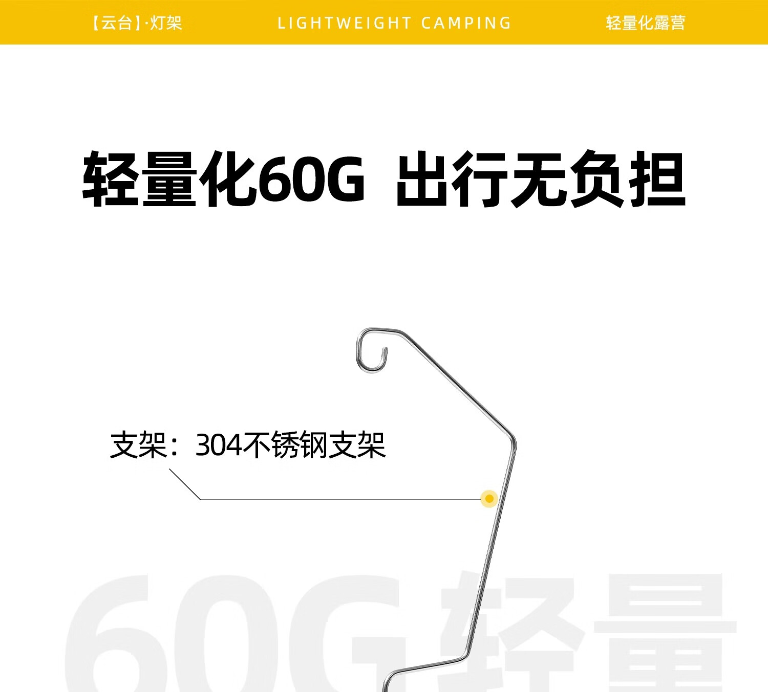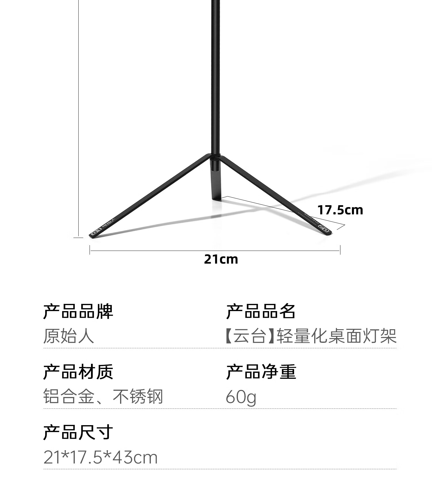 原始人户外露营灯架灯杆支架户外灯架杆露营灯野营桌面灯架轻量化 云台桌面灯架(仅重60g)