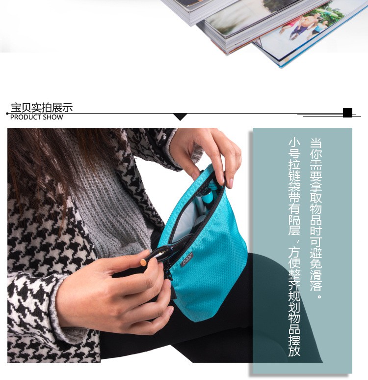 gox的产品很贴近生活,出门携带很方便,产品材质相当不错,牢固结实安全,放心,平时可以放些零碎的物品,出门旅行也可以收纳洗漱用品,一件多用,挺好的。