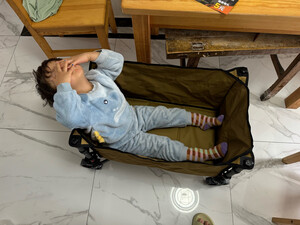小车做工不错,收纳也很方便,出门带东西很方便,不占地方。承重力也是相当可以,拉上小孩子无压力。整体造型非常的简洁大气。材质也是感觉非常的不错。出行好帮手值得推荐!
