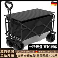 暴走怪兽户外露营车折叠小推车拖车野餐车大容量聚拢收纳摆摊出行装备 【迷你聚拢款】黑色150L【实心万向轮】