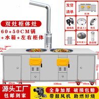 昹砺斯柴火灶双柜体室内可移动不锈钢双锅铁锅灶新式农村移动铁锅灶 厚双锅60cm+50cm+左右柜体+水箱