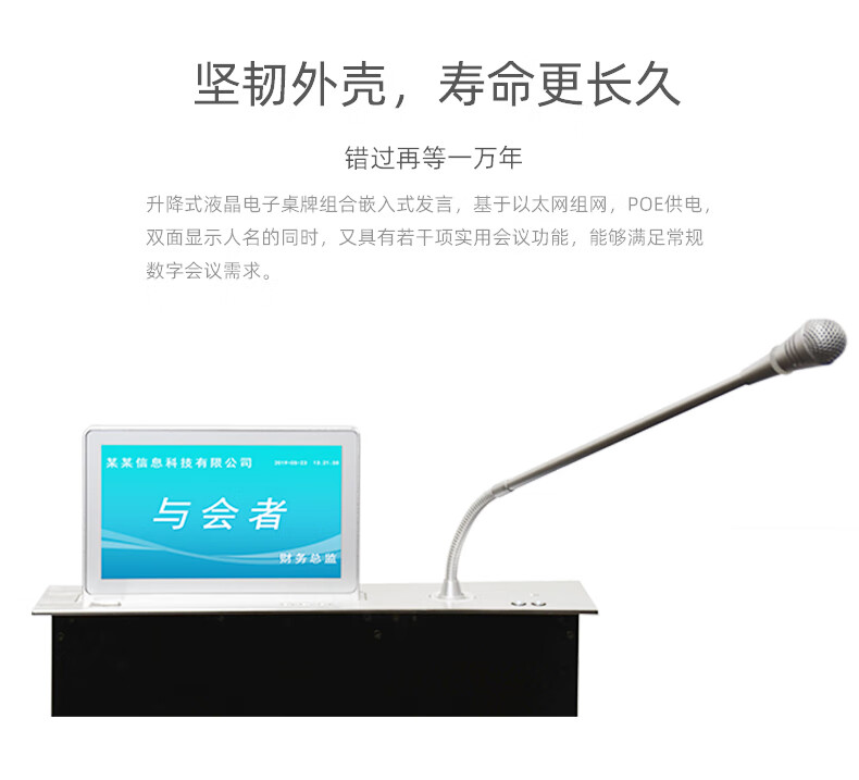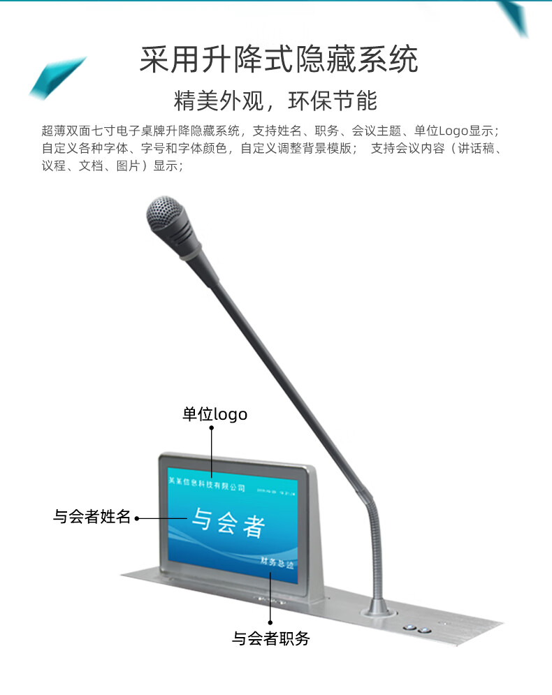 议思通无纸化会议系统液晶升降电子桌牌带升降话筒一体7英寸/10.1英寸升降式电子铭牌双面显示电子姓名牌 10.1英寸升降桌牌带升降话筒一体机