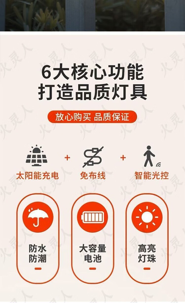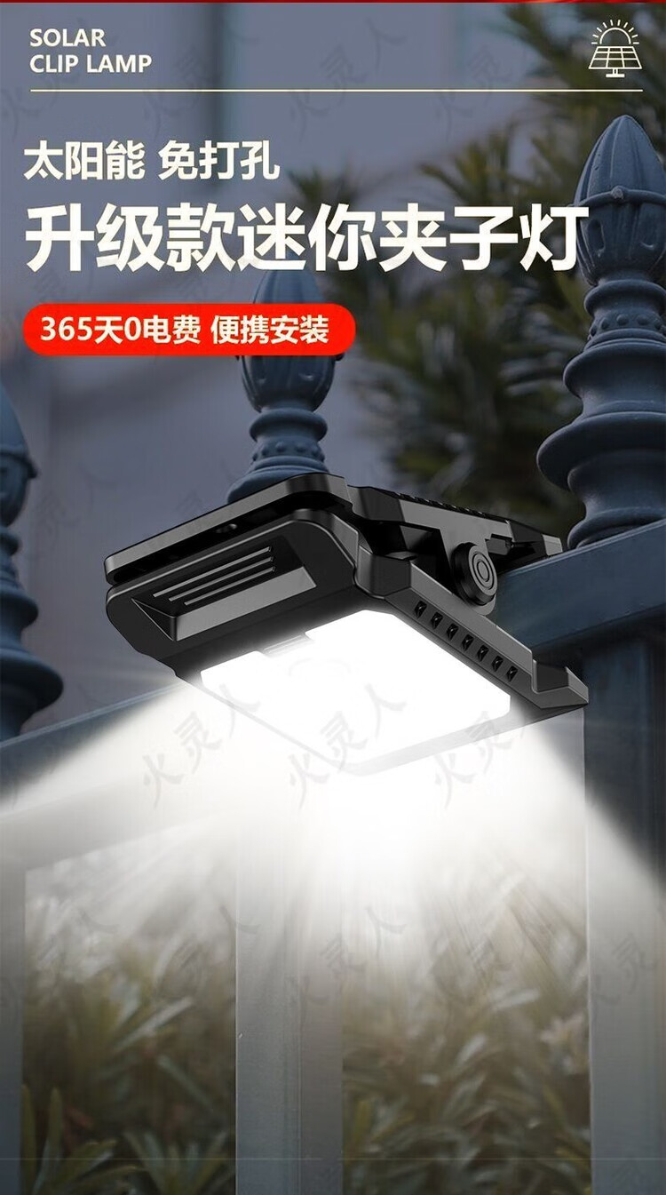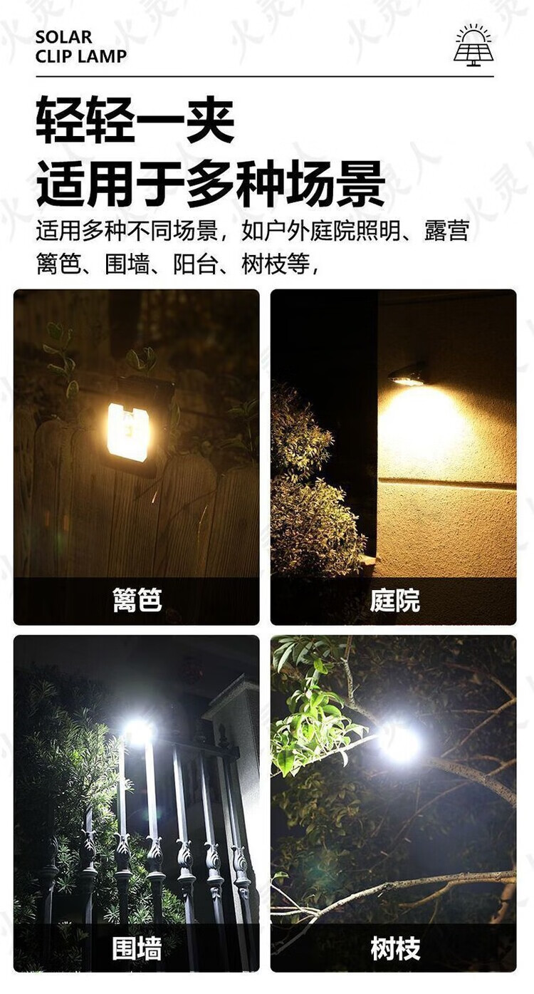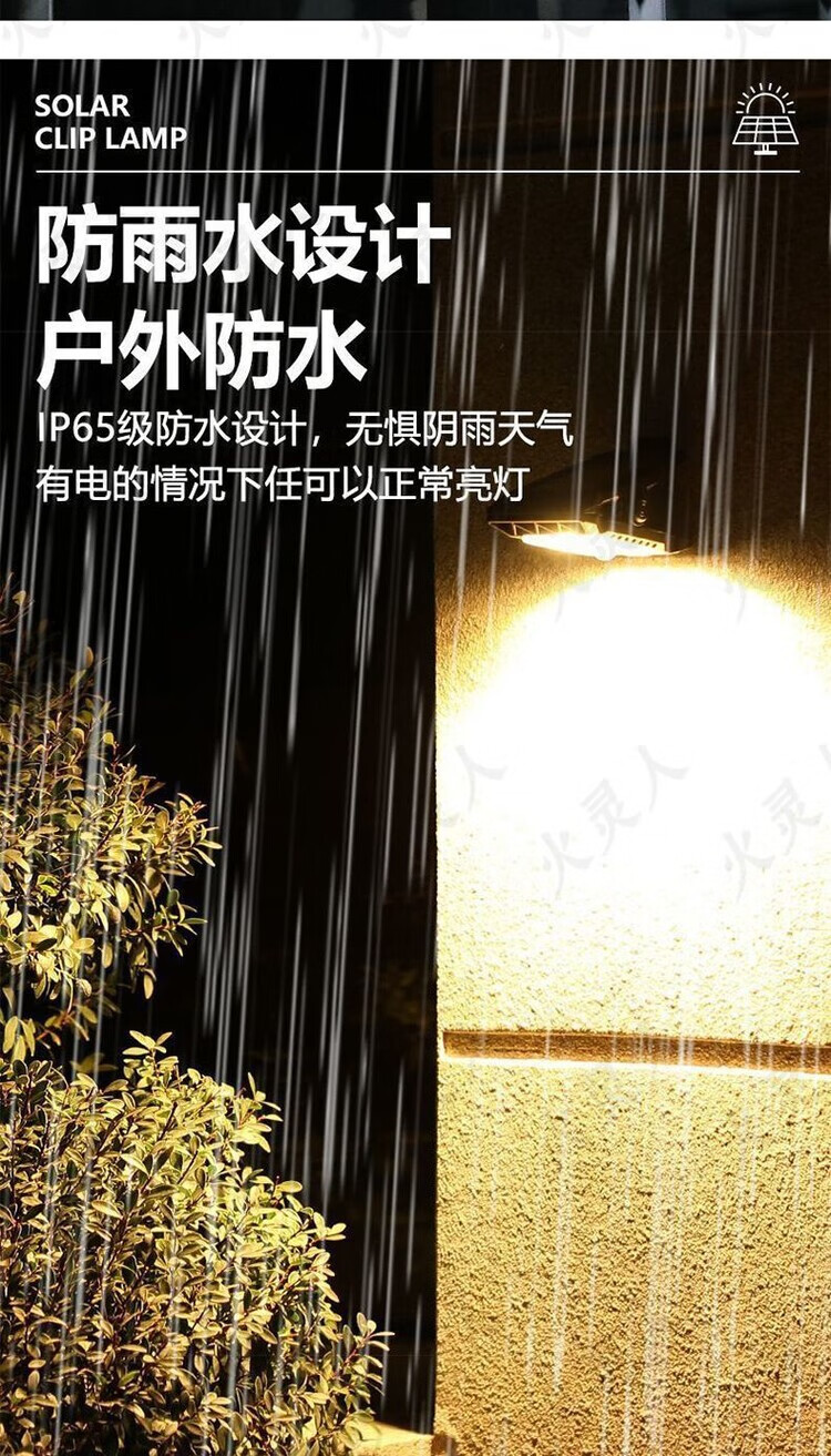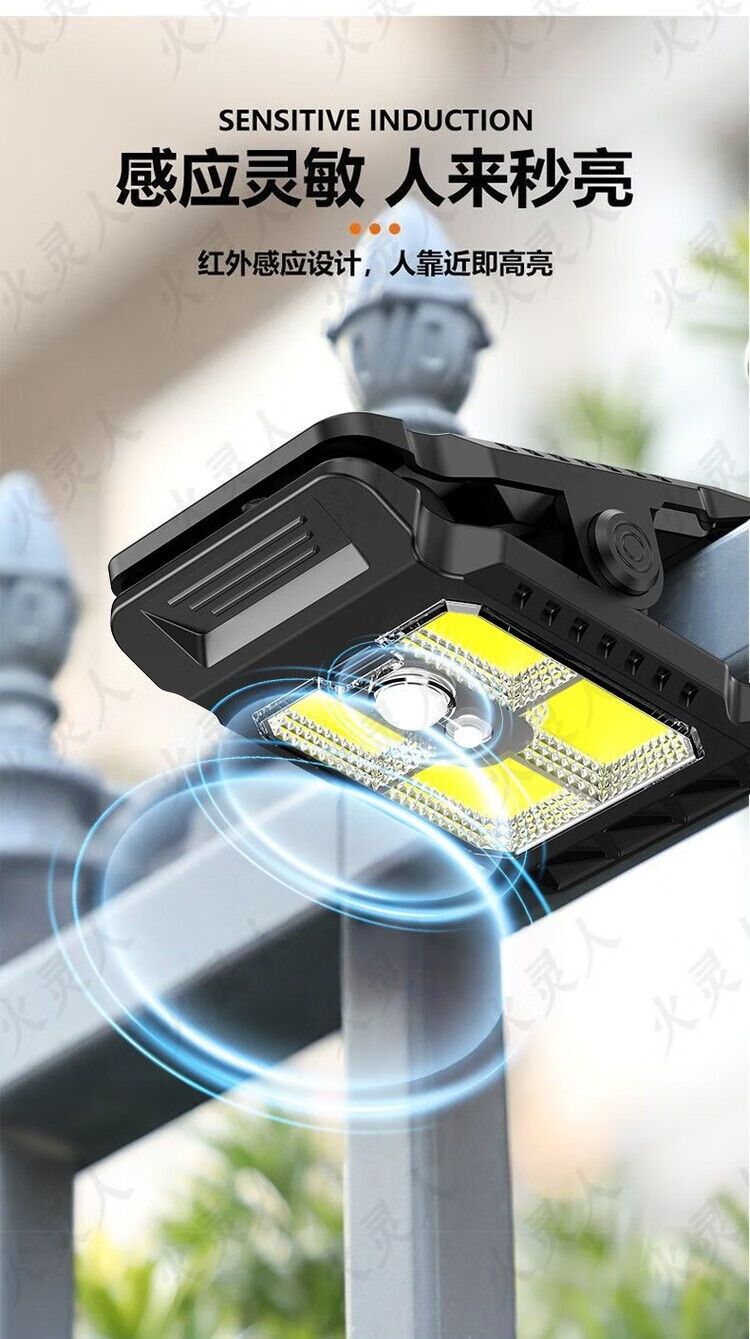 筏芯太阳能夹子灯户外灯庭院灯新款家用防水壁灯人体感应超亮照明路灯 火灵人-旗舰版【感应/耐用丨即夹即用】免打孔 98000K超强亮度【旗舰款】待机998天