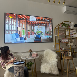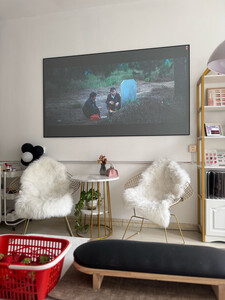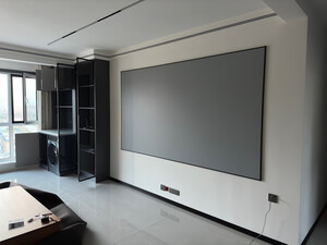 幕布材料厚实,全程自己动手安装,第一次装有点小累,上墙后房间定位氛围一下子上来了,开机看视屏,关机它就是一副画133寸上墙很大气