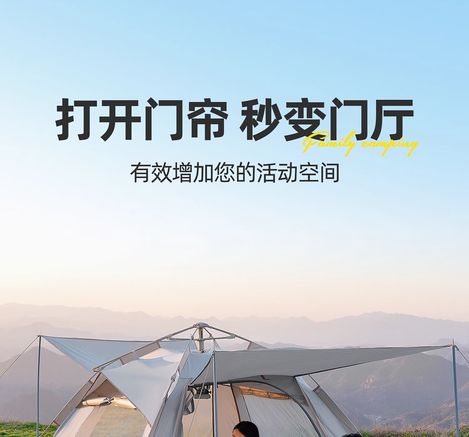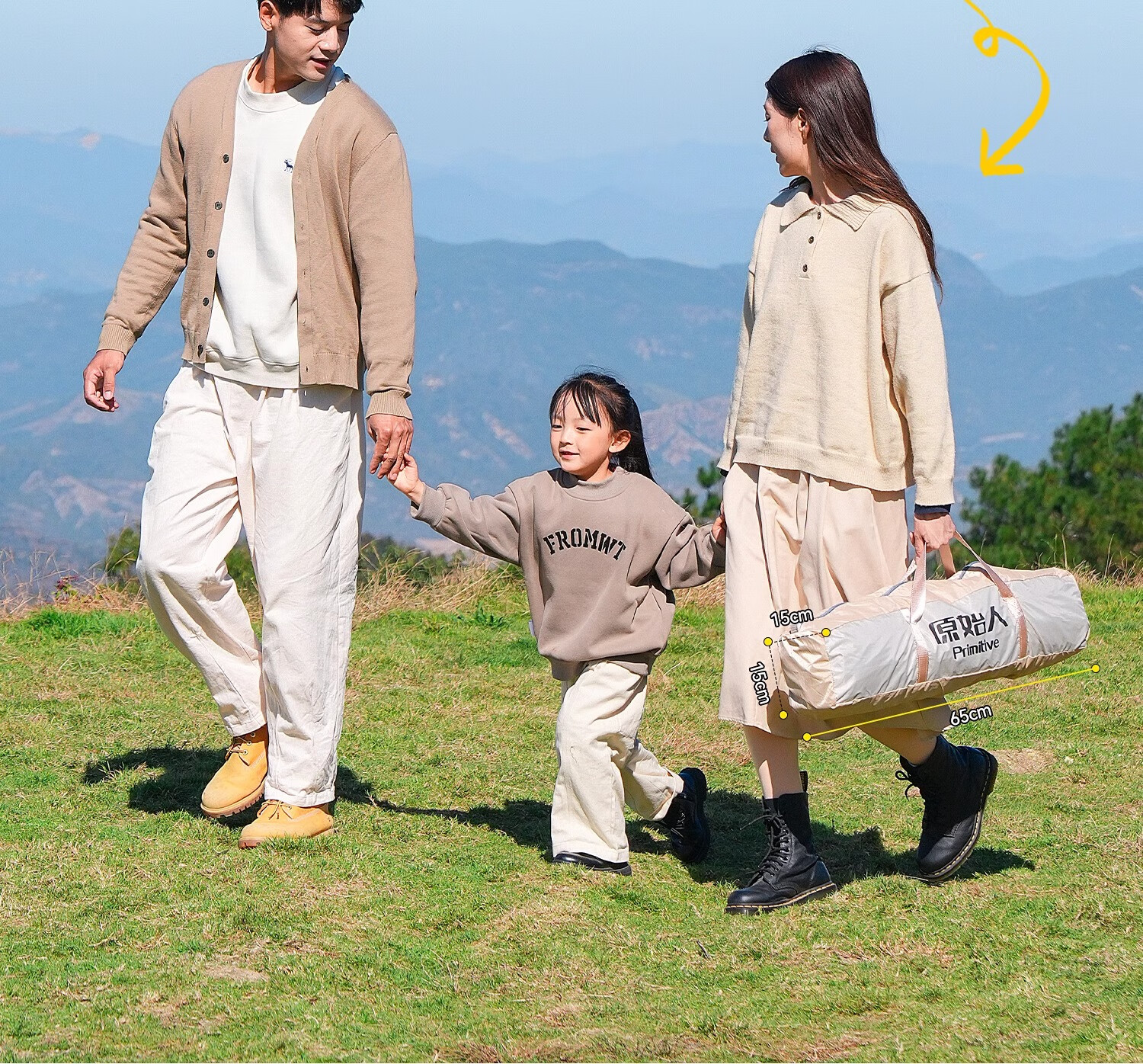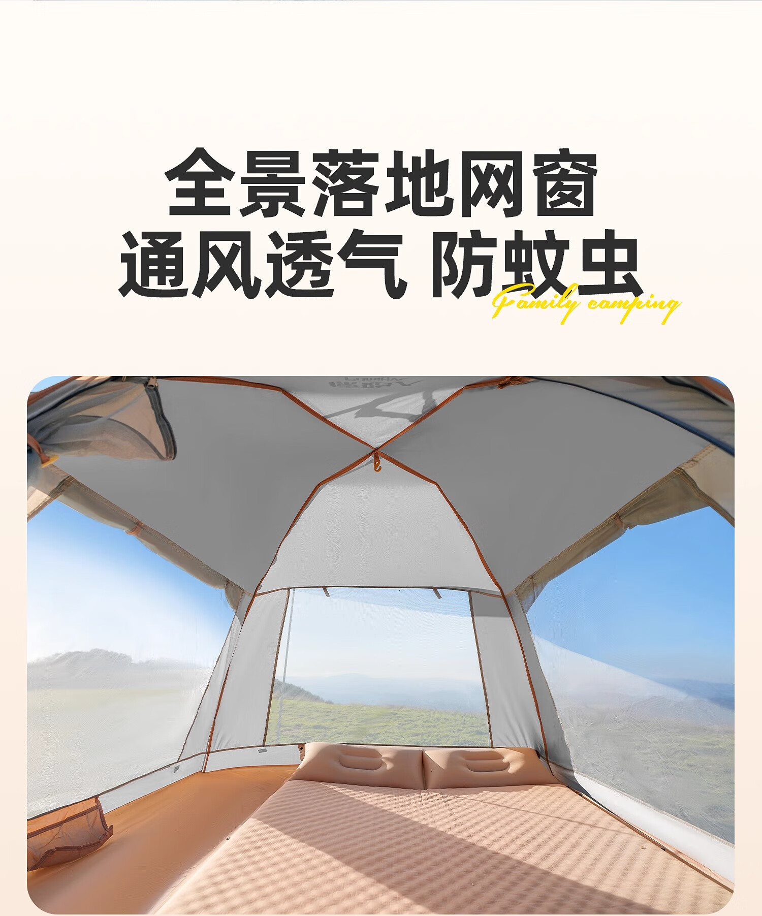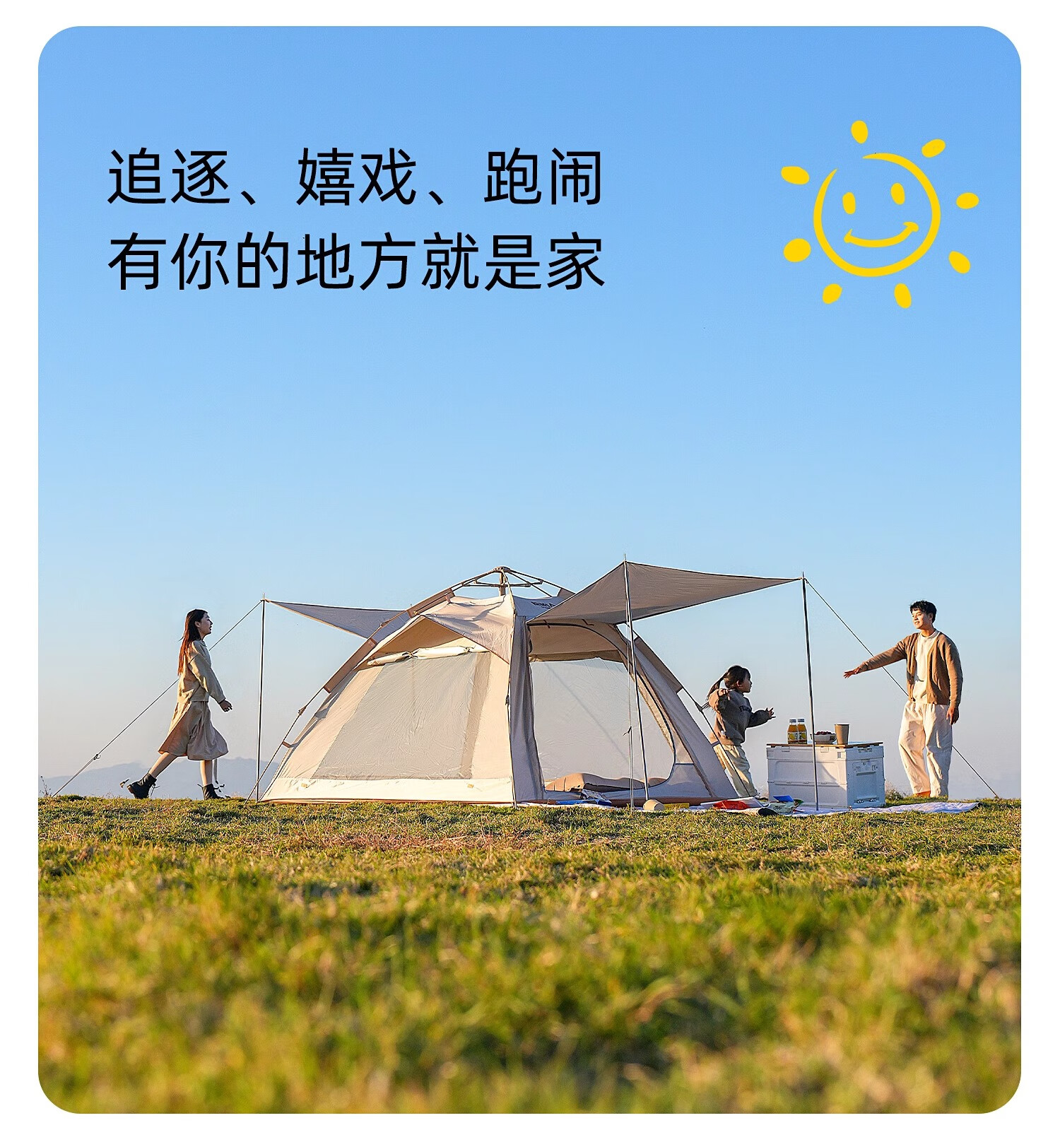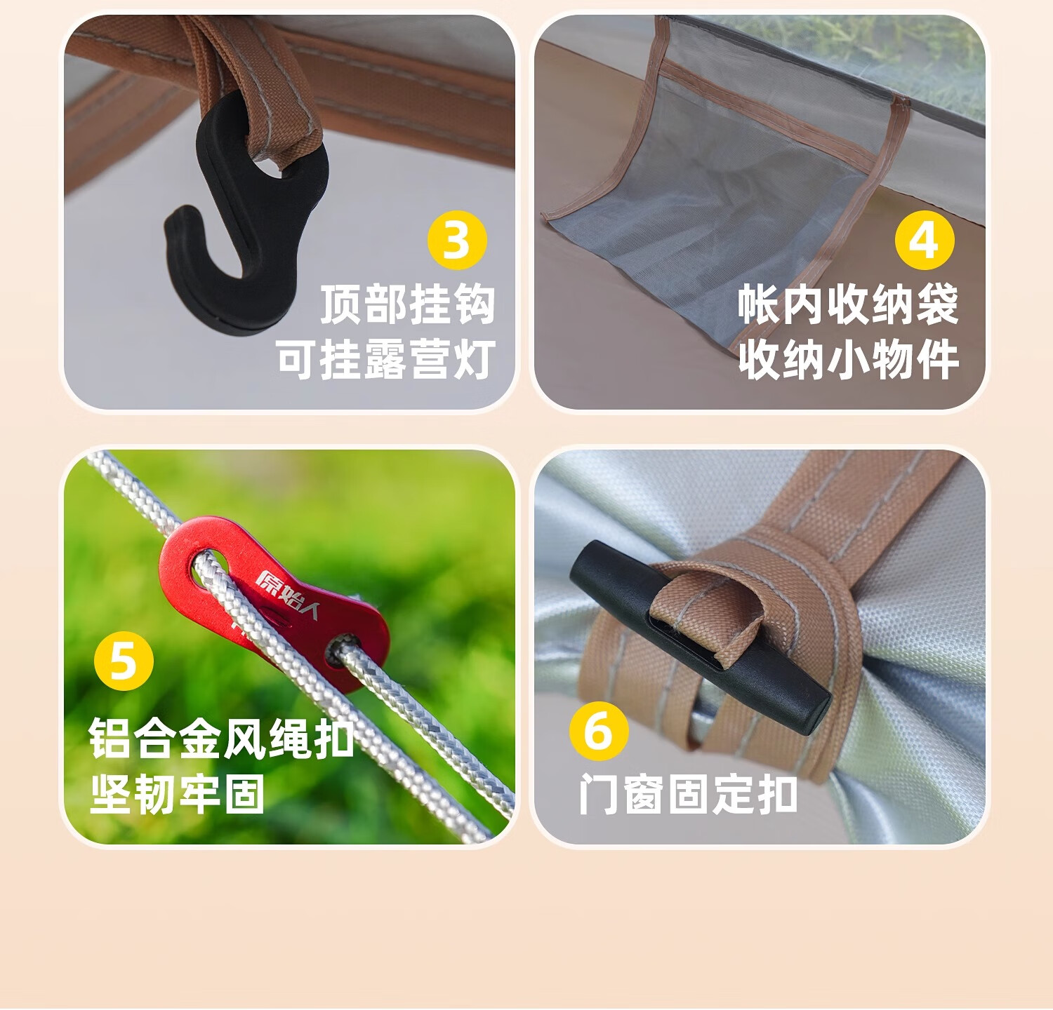 原始人(The Primitive)速开帐篷户外便携式折叠野外野营露营防雨加厚自动野营装备 中号杏米白【便携省心套餐】