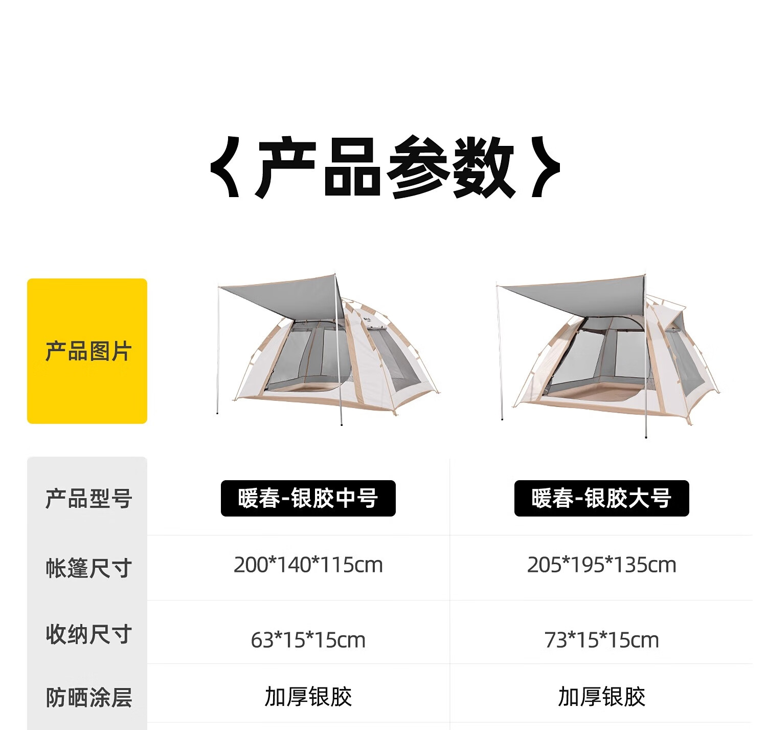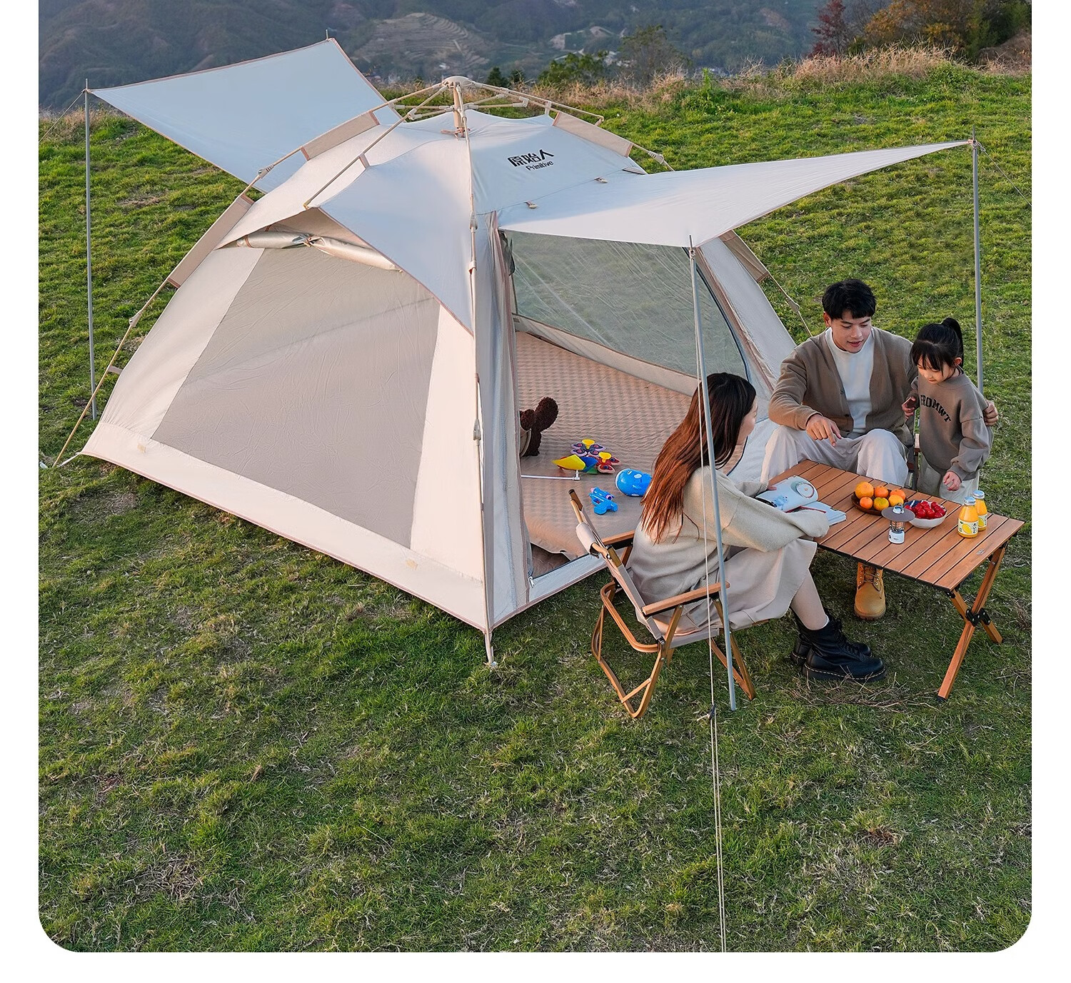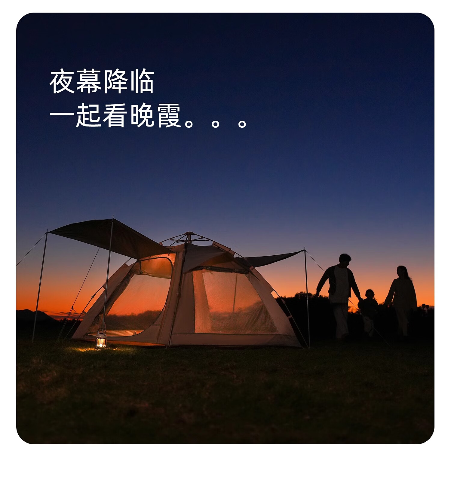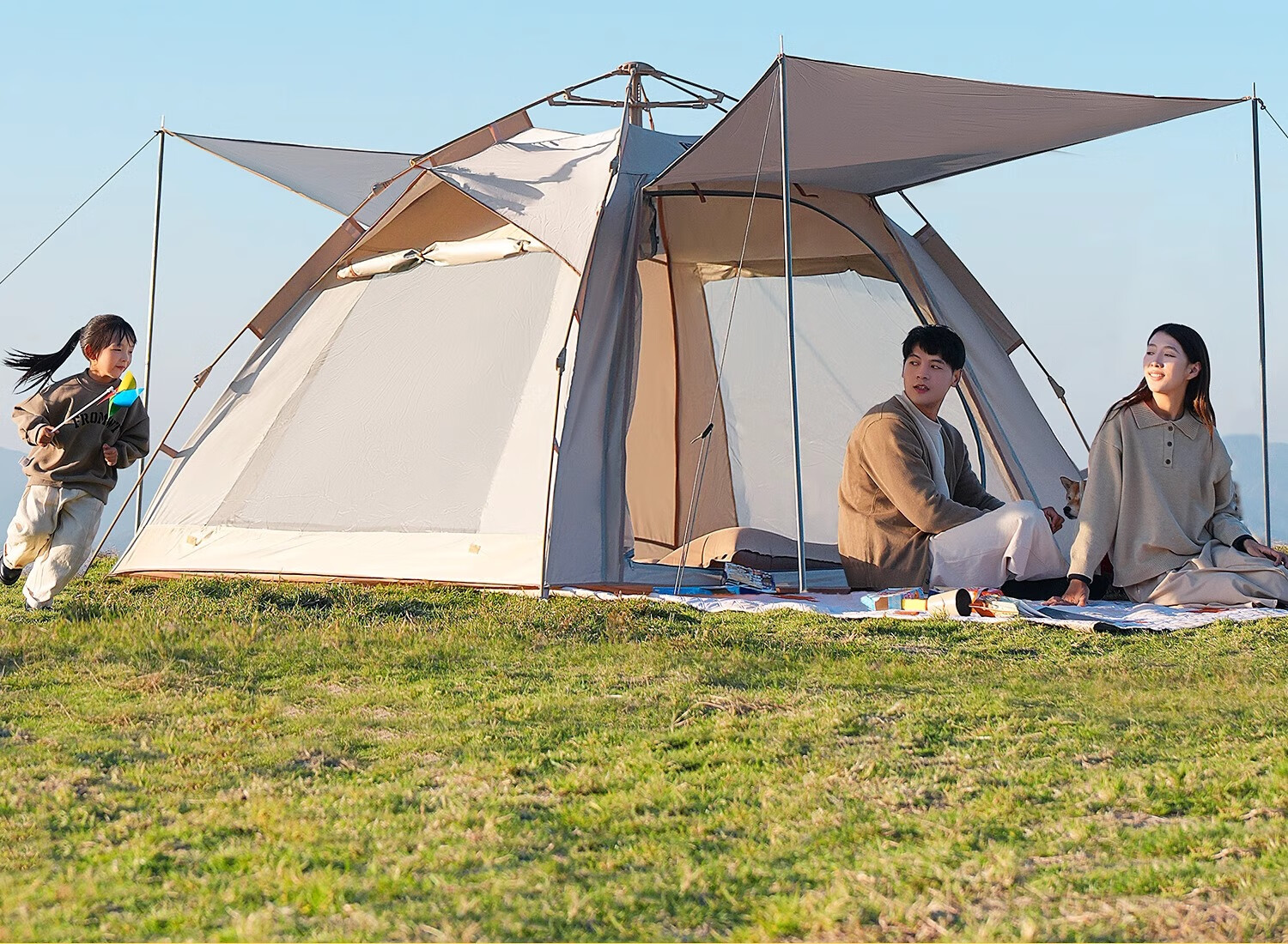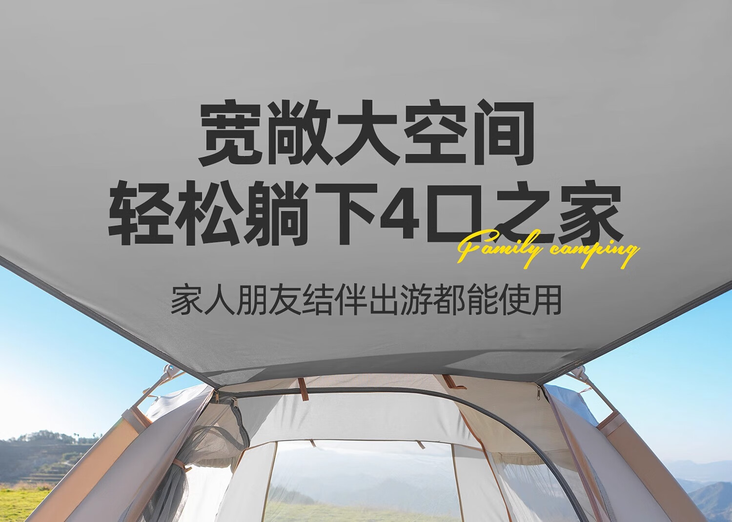 原始人(The Primitive)速开帐篷户外便携式折叠野外野营露营防雨加厚自动野营装备 中号杏米白【便携省心套餐】