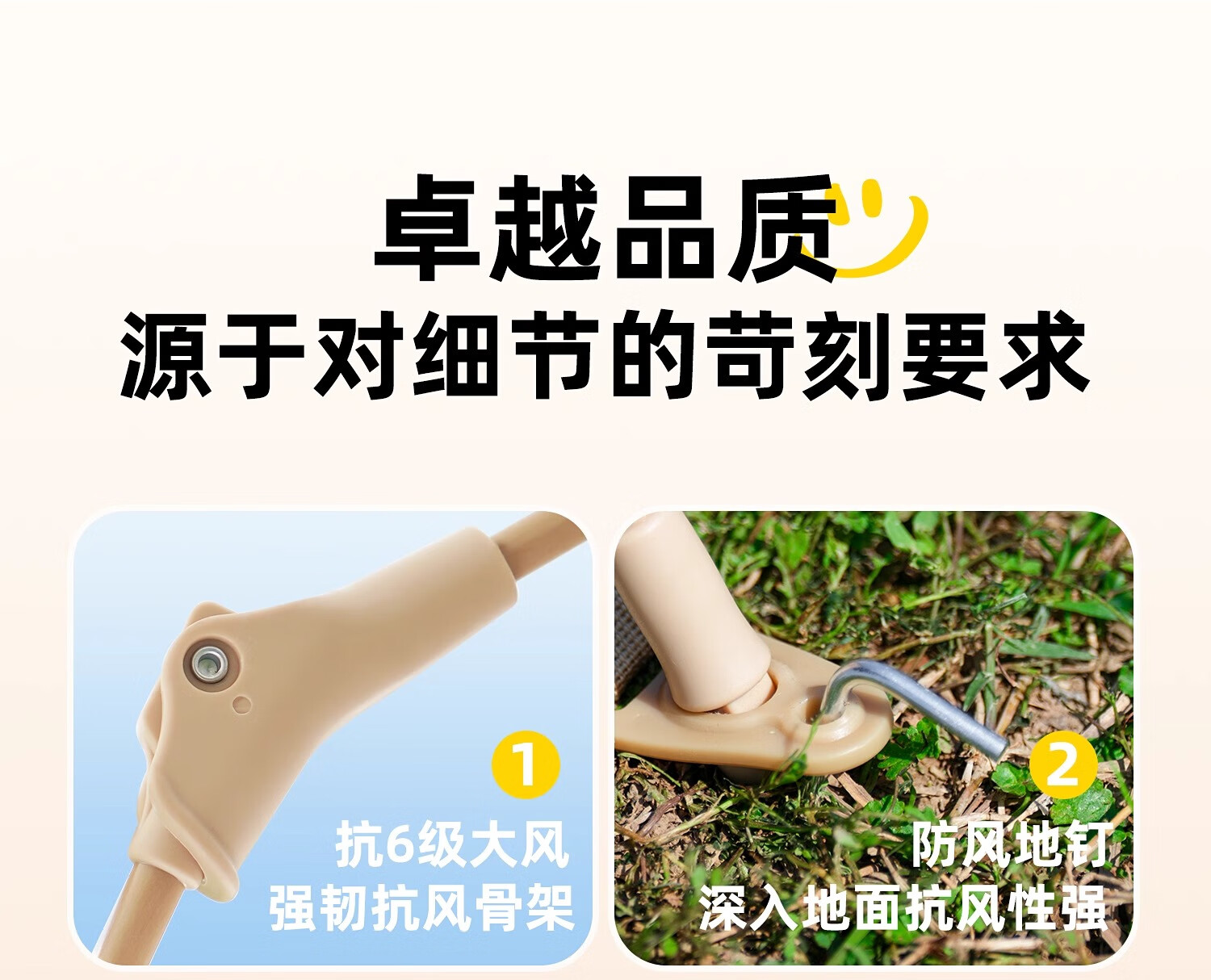 OTHE自动速开无底沙滩帐篷户外便携折叠简易儿童玩沙遮阳棚海边防晒 【黑胶】双门米白+大防潮垫(送防