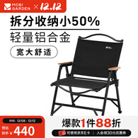 牧高笛(MOBIGARDEN)山川折叠椅 户外黑化露营便携可拆卸克米特椅铝合金折叠椅 高背椅-曜石黑