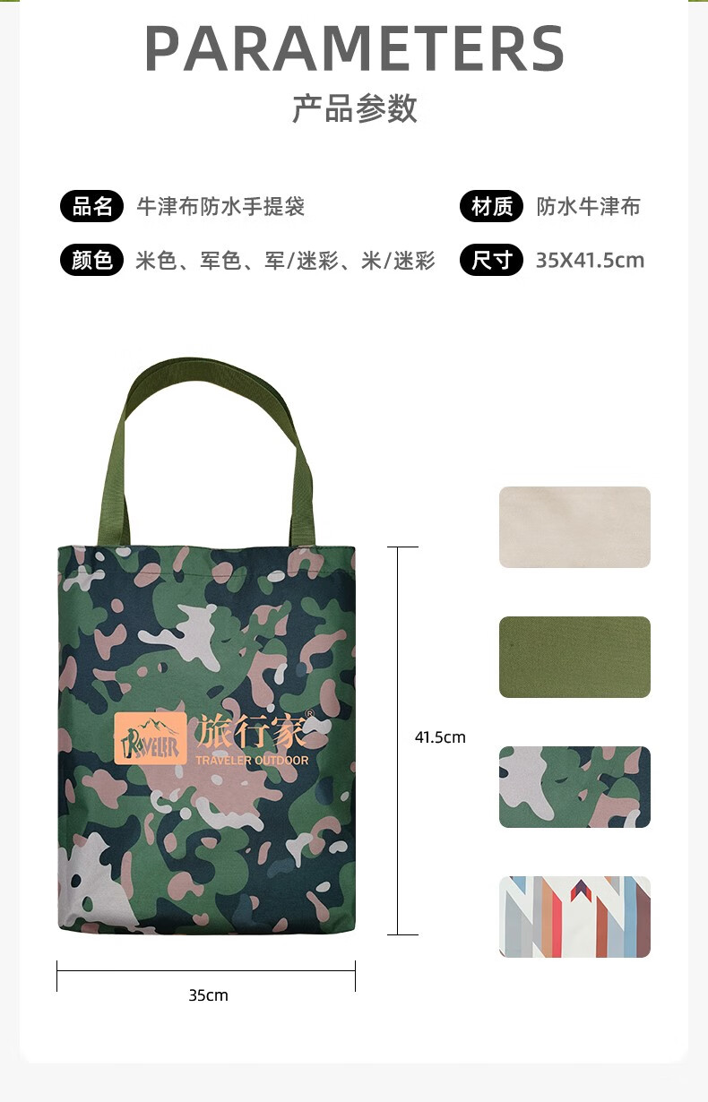 旅行家牛津布手提袋户外露营野餐多功能加厚耐磨防水高承重耐用收纳袋 军色