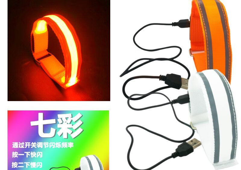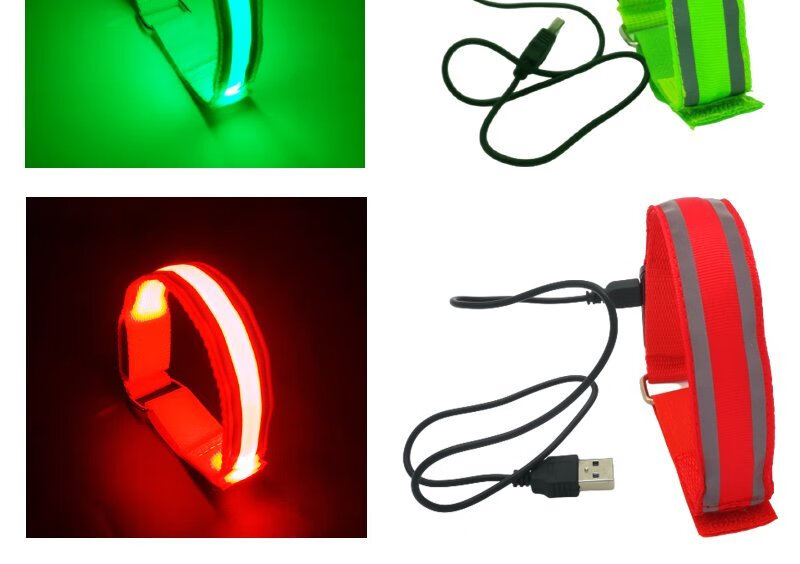 糜岚(MieLanat)夜跑安全灯警示灯发光跑步手臂带led运动手环夜跑骑行安全信 红色一条装充电款