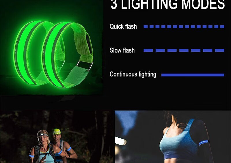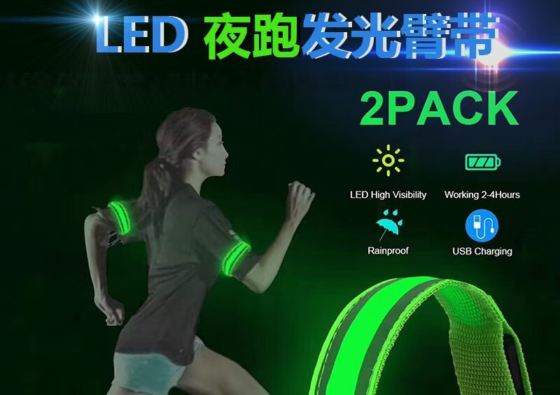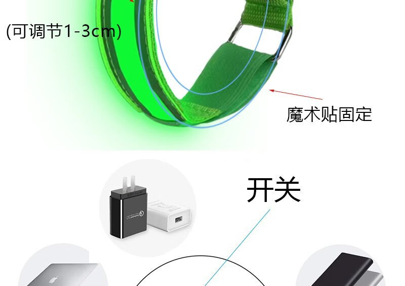 乐卡利夜跑发光手臂灯带 骑行彩色灯led发光臂带电池夜跑警示灯