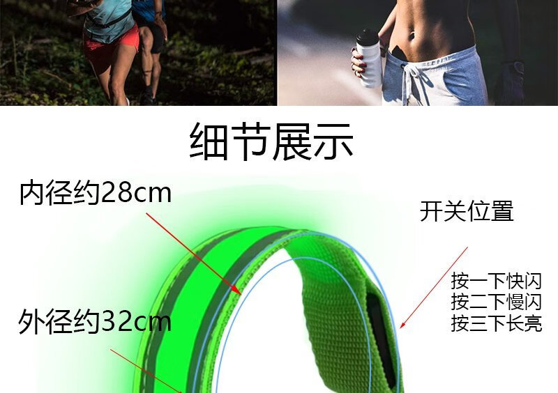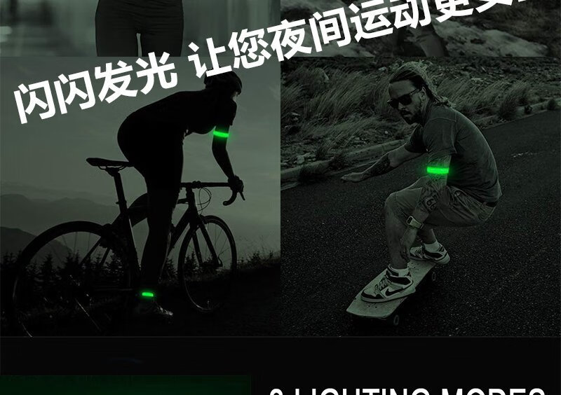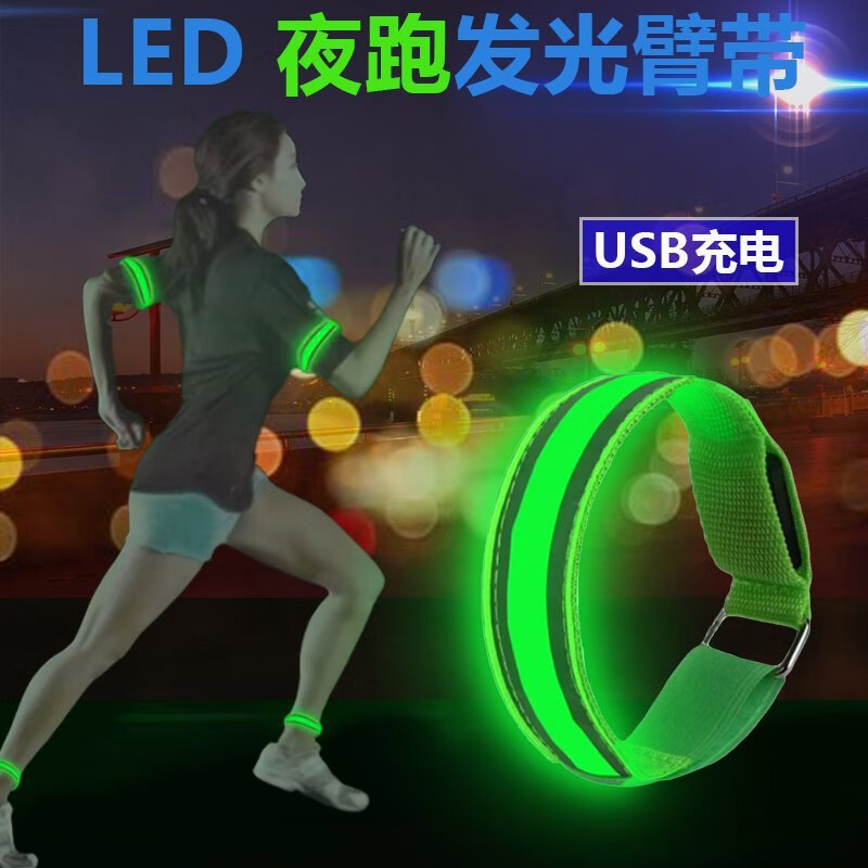 ZKHE夜跑反光带跑步反光带夜跑装备臂灯跑步运动配饰 绿色usb充电款【