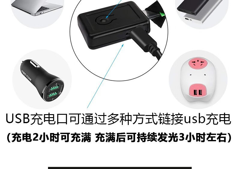 钻后LED发光臂带夜跑灯户外运动夜跑骑行闪光警示灯USB充电手腕灯手环 蓝色电池款