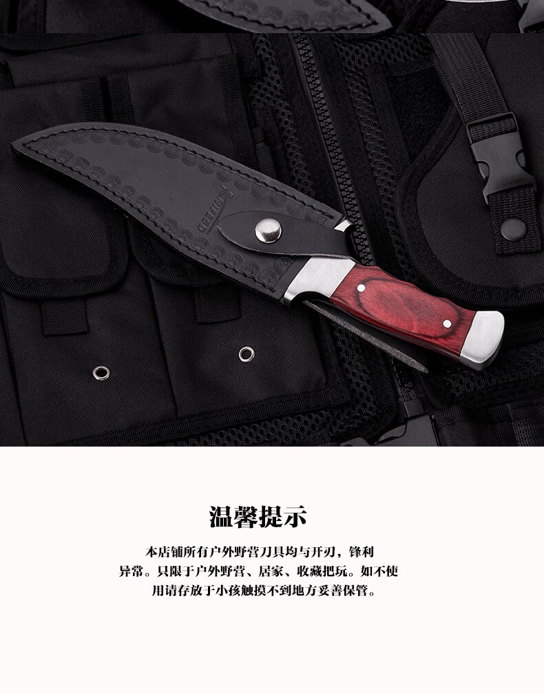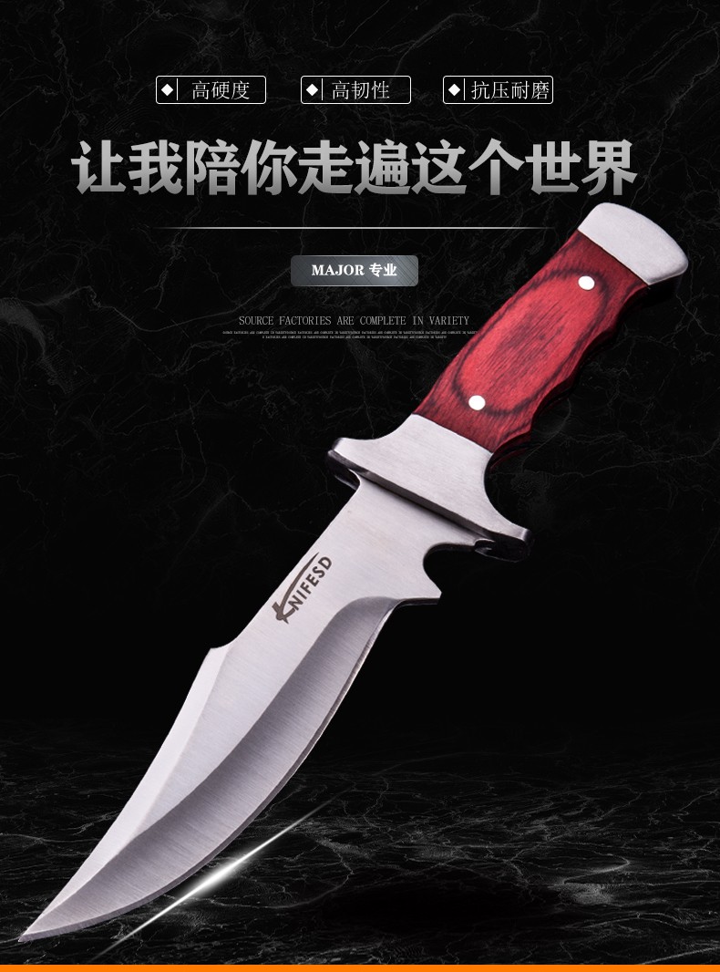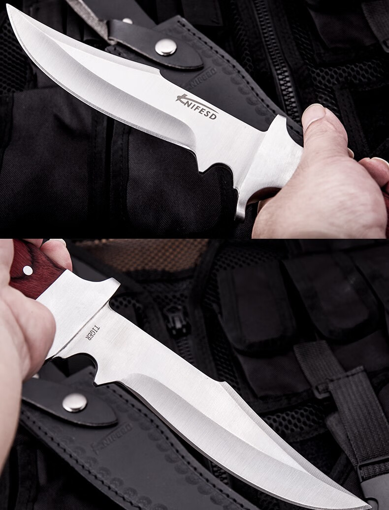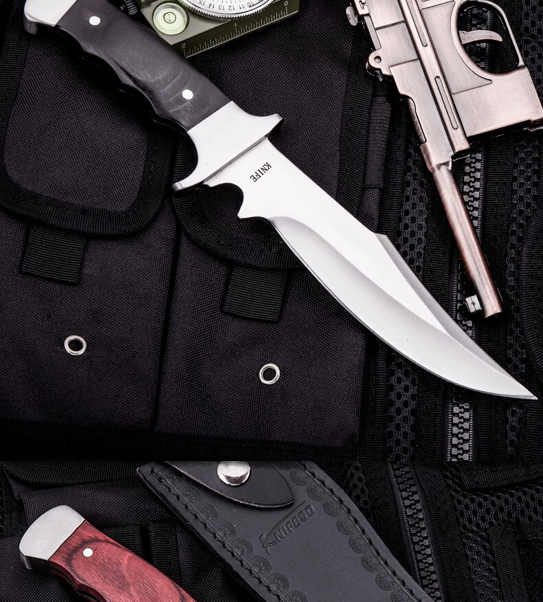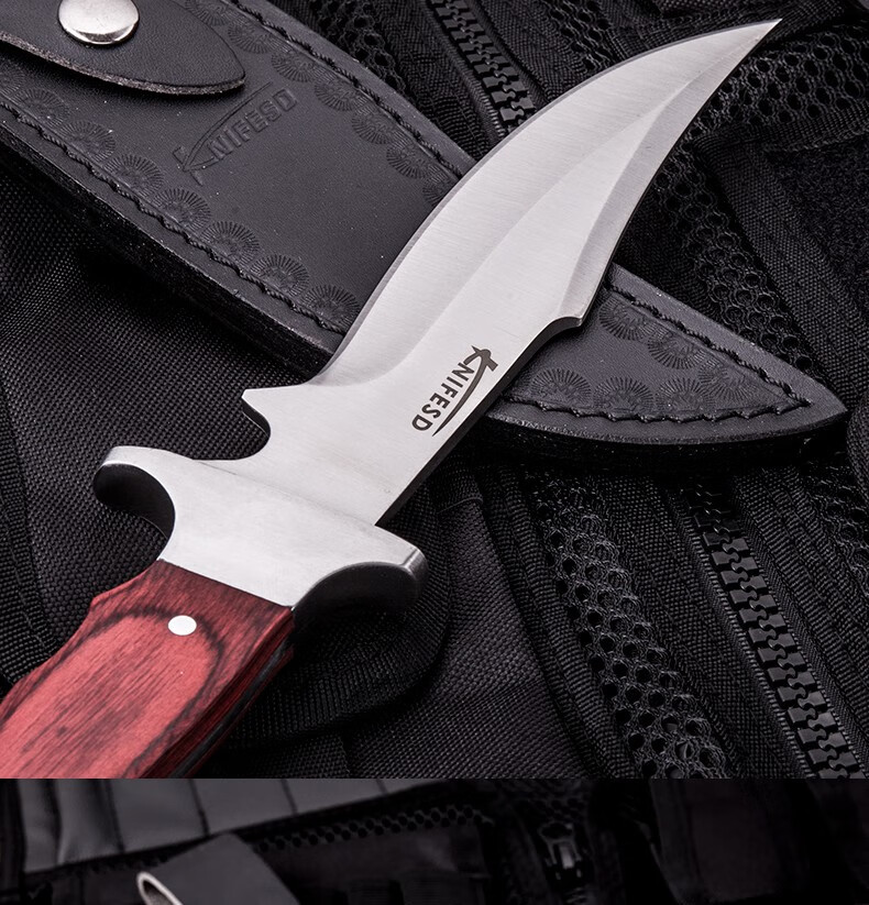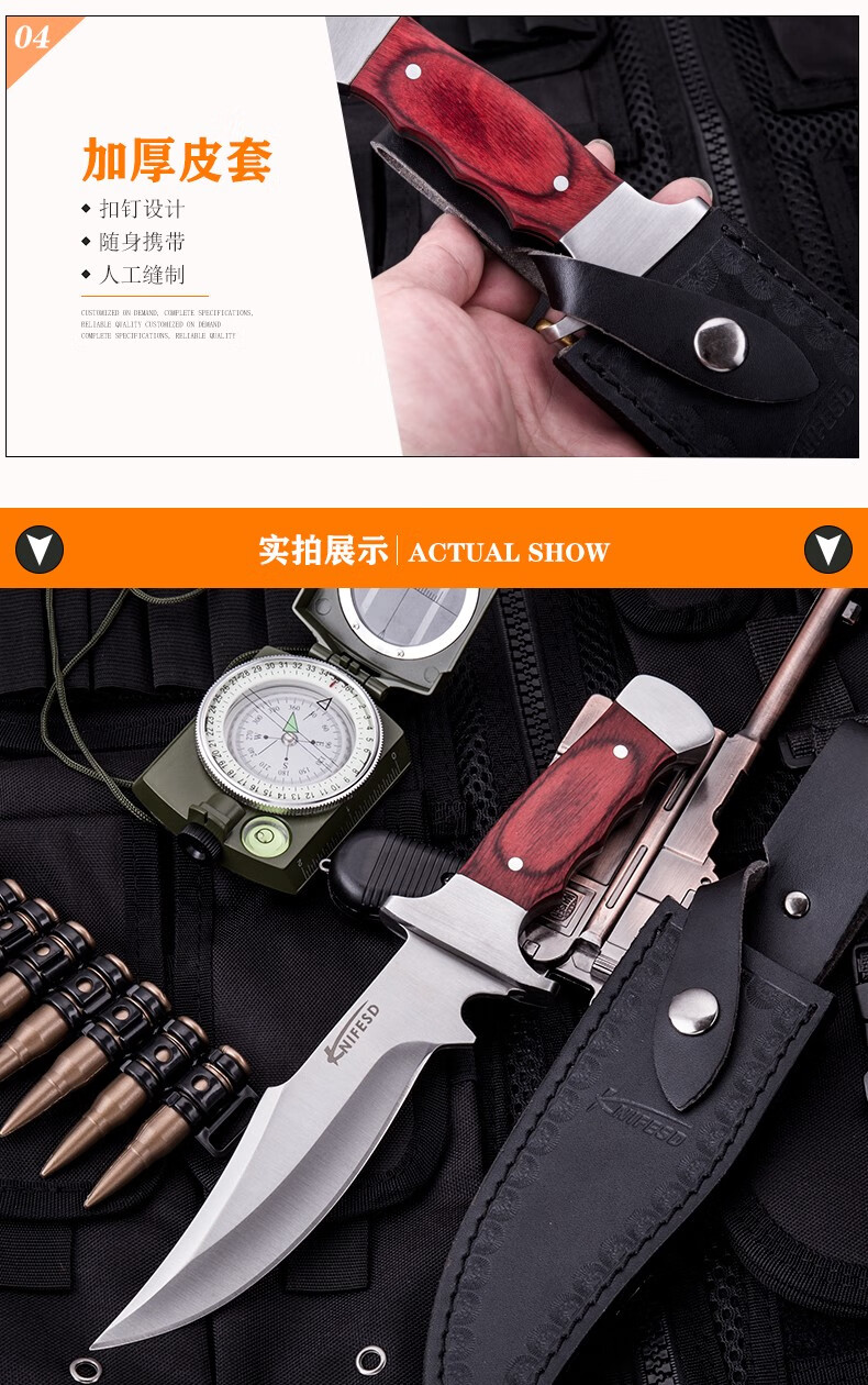 夜行者(Night stalker)随身便携直刀高硬度锋利一体野营刀具登山刀具 红木柄+棕色皮套