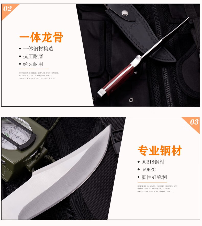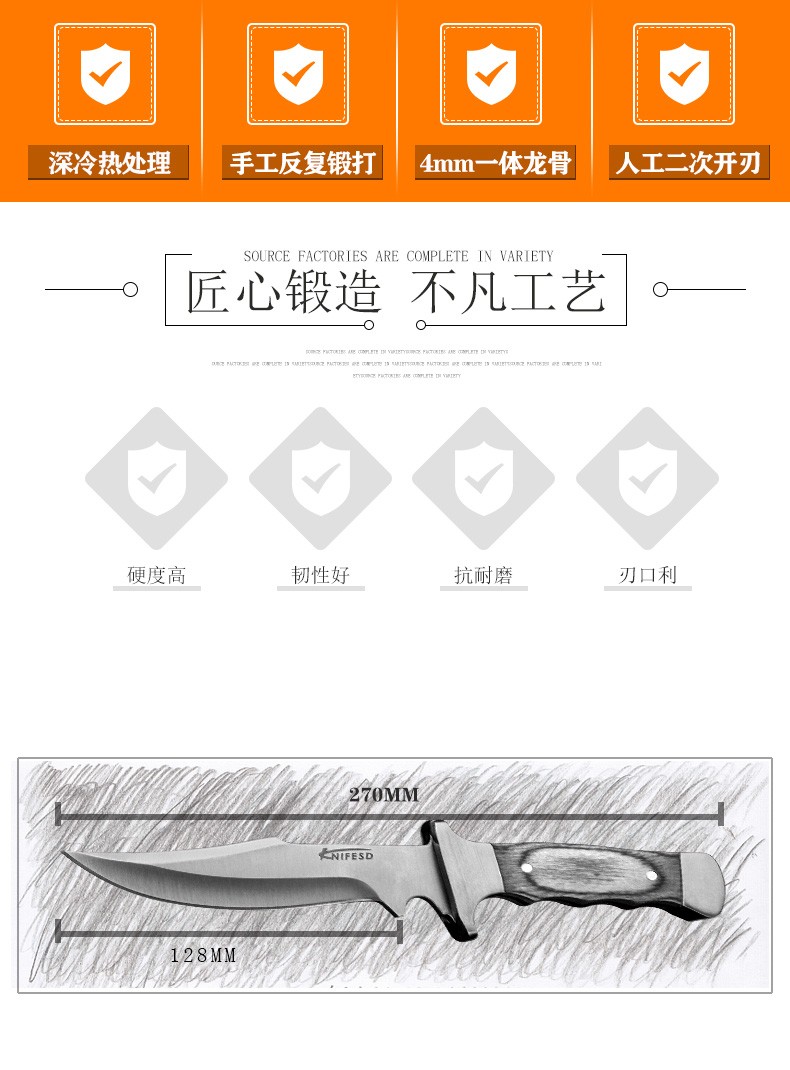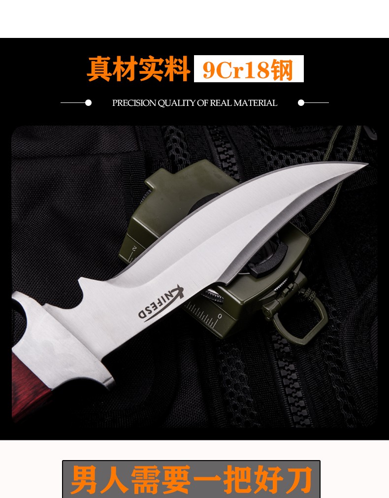 户外直刀一体龙骨锋利高硬度荒野生存刀加厚防身露营随身匕水果刀 破风直刀