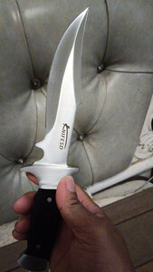 要说这做工精良吧,我觉得我有良心,但是看这个价格吧,老板肯定也有。捅了块肉,能行,拿着玩可以,但是就算再开刃,估计也禁不住用。但是这把造型很好,很庄十三。