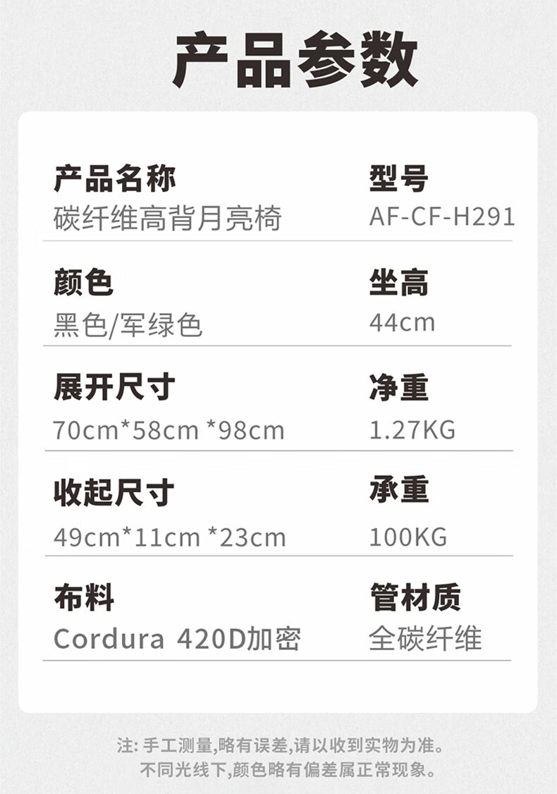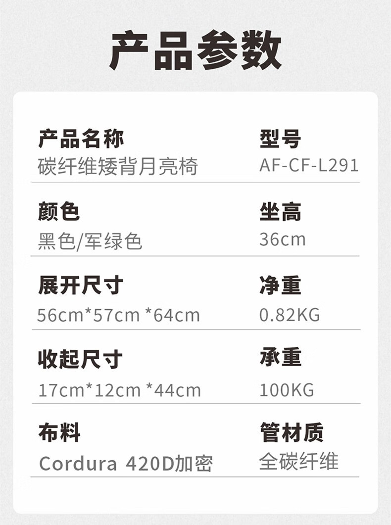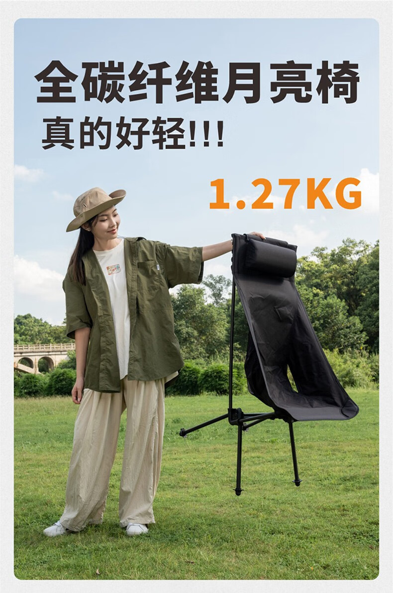 AREFFAAareffa超轻碳纤维高背户外折叠椅露营椅便携轻便凳子野餐月亮椅 【白色】 碳纤维高背月亮椅(黑管)