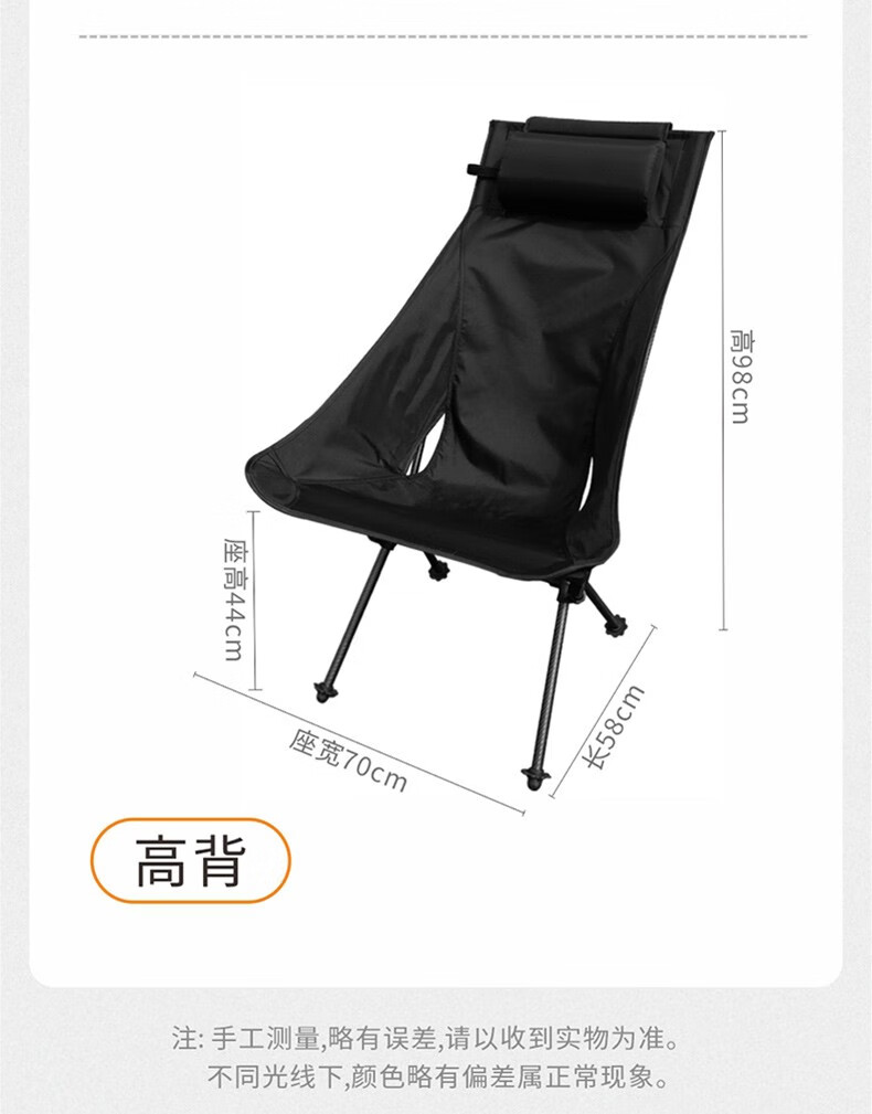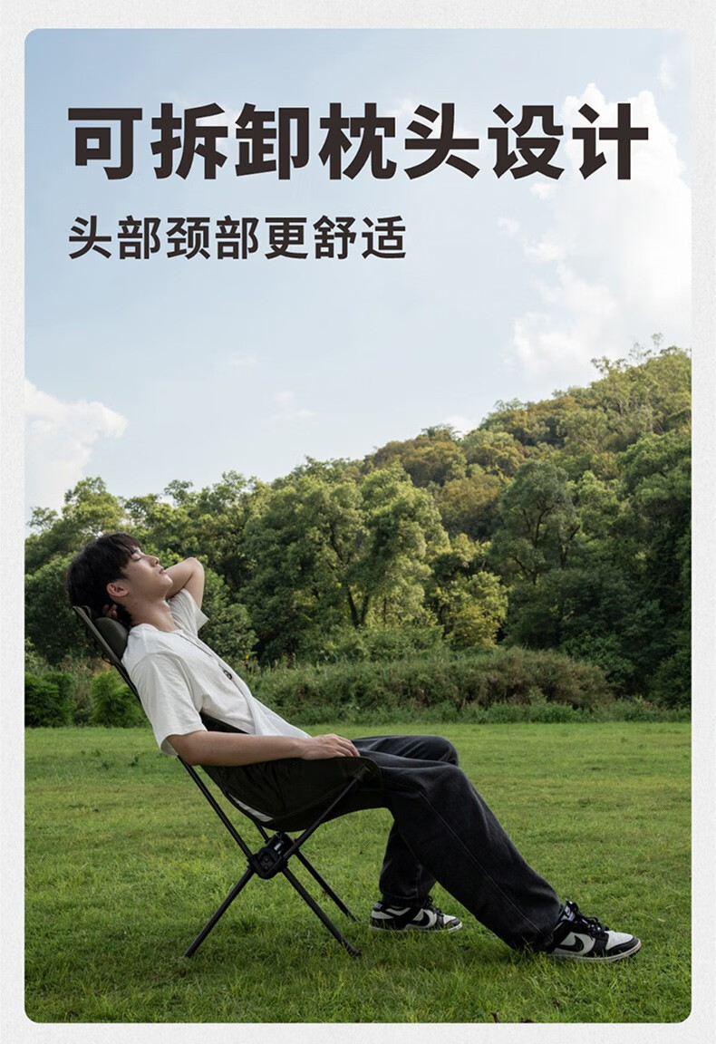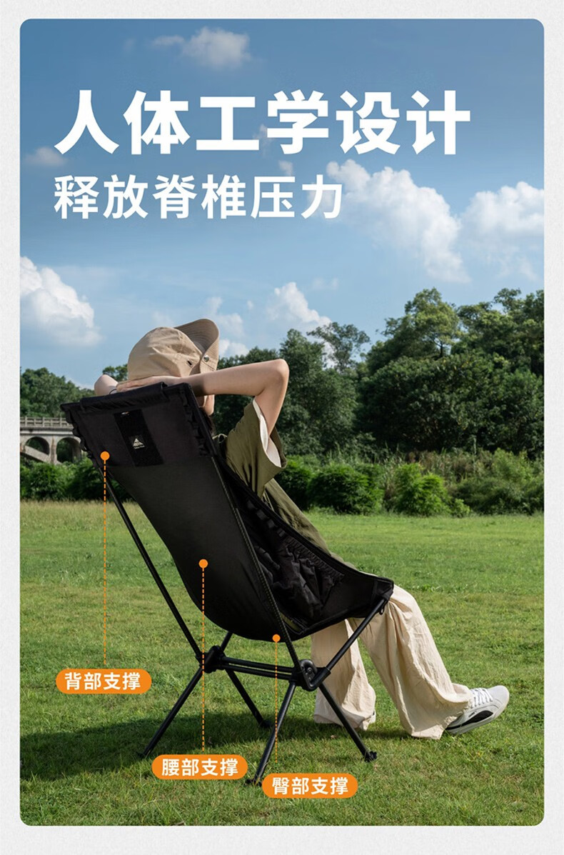 black dog户外逸享高背折叠椅露营便携躺椅懒人椅休闲旅行椅 夜幕黑